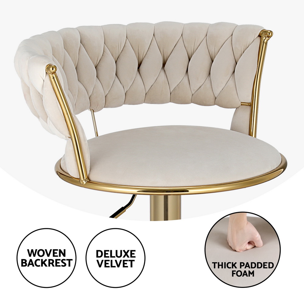 Artiss Bar Stools Gas Lift Velvet Woven Backrest Ivory