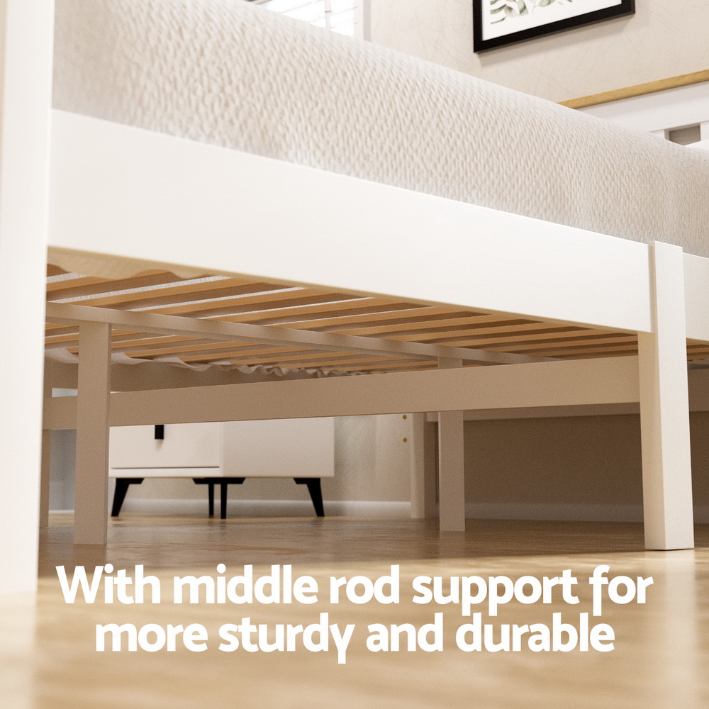 Artiss Bed Frame Single Size Wooden Platform with 2 Storage Drawers White PONY