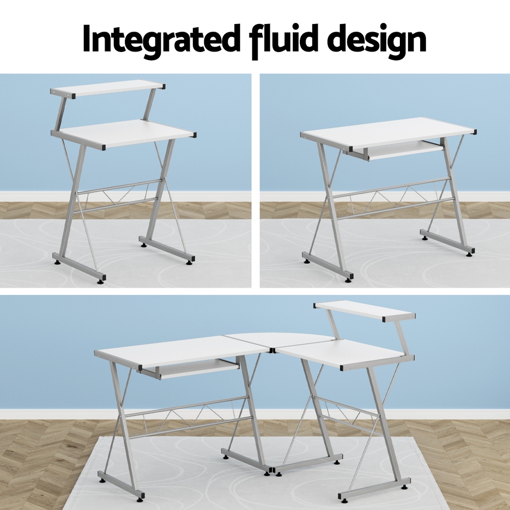 Artiss Computer Desk L-Shape Keyboard Tray Shelf White