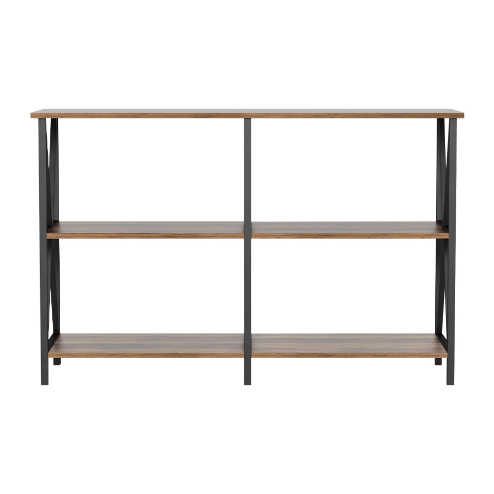 Looking for extra storage space in your living room or hallway? The industrial-style Xiah Console Table is the ideal entry piece to welcome visitors, hold décor, and complete the look of your living room. Crafted from 15mm thick, sturdy particle board and anti-rust powder-coated black steel, the table is durable and designed to stand the test of time. The X-brace side and centre support keep the table balanced and strong, giving the shelves a 50kg total weight capacity. 3 tiers and six generous shelves give you plenty of room to store collectables, memorabilia, family portraits, or anything you see fit. Anti-slip feet keep the shelves in place so you never have to worry about slipping or scratching your floors, and the whole piece is simple to assemble and maintain so you can get to organizing right away. Get creative with your decor and enjoy the simple things with your new Xiah Console Table.