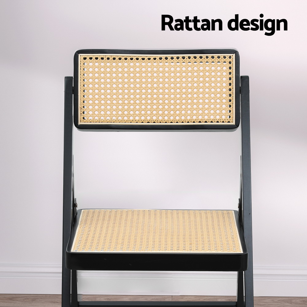 Artiss Dining Chair Wooden Rattan Foldable Black