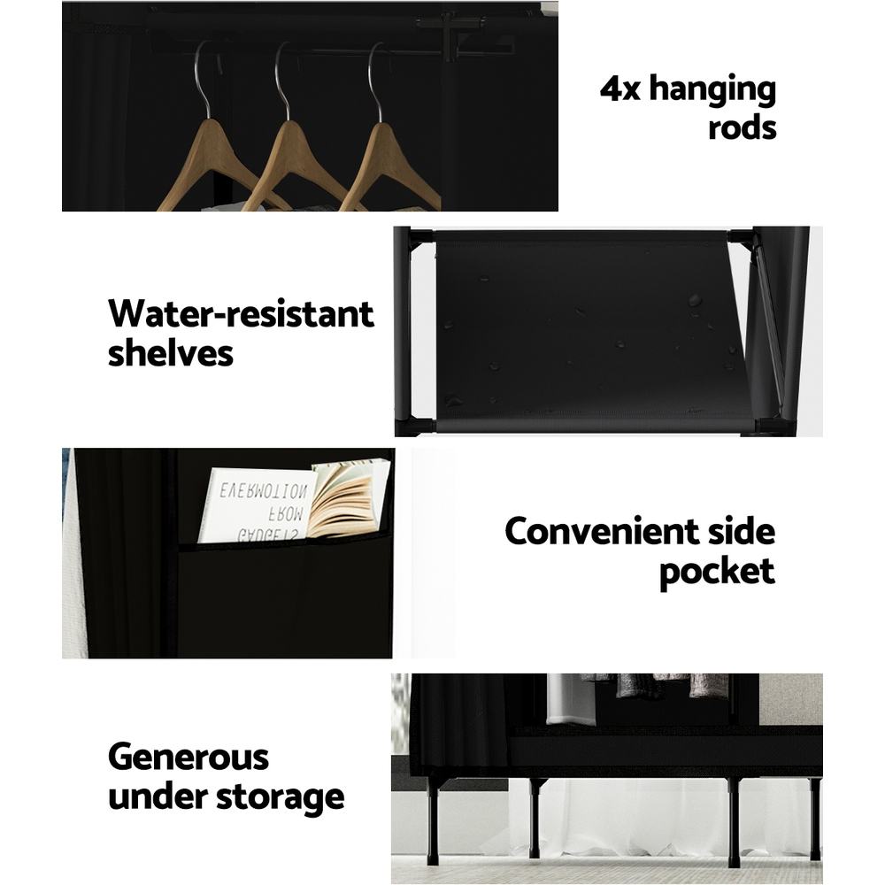 Artiss Large Portable Clothes Closet Wardrobe with Shelf Black