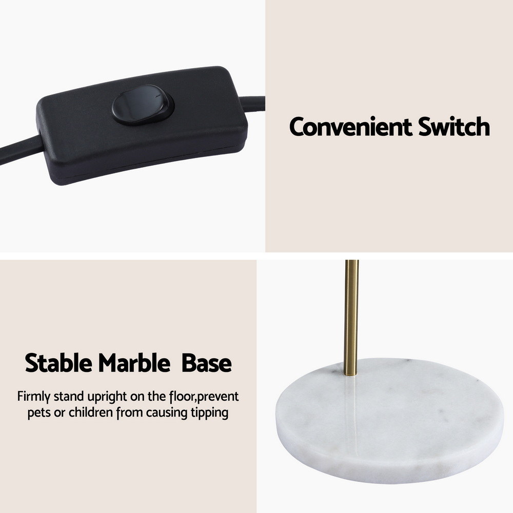 Illuminate your space with the Artiss Modern Arched Floor Lamp, a perfect blend of elegant design and functional brilliance. This lamp’s sleek, curved frame extends over your sofa or reading chair, providing a focused, downward light ideal for reading or creating a cozy, inviting ambiance. Crafted with a premium brass finish and anchored by a heavy-duty marble base, it offers both a sophisticated look and exceptional stability. The tall, standing design ensures it makes a statement in any room, whether it’s your living area, bedroom, or home office. With its simple, clean lines, this lamp seamlessly complements any contemporary or modern decor, bringing style, stability, and light to your favorite corner.