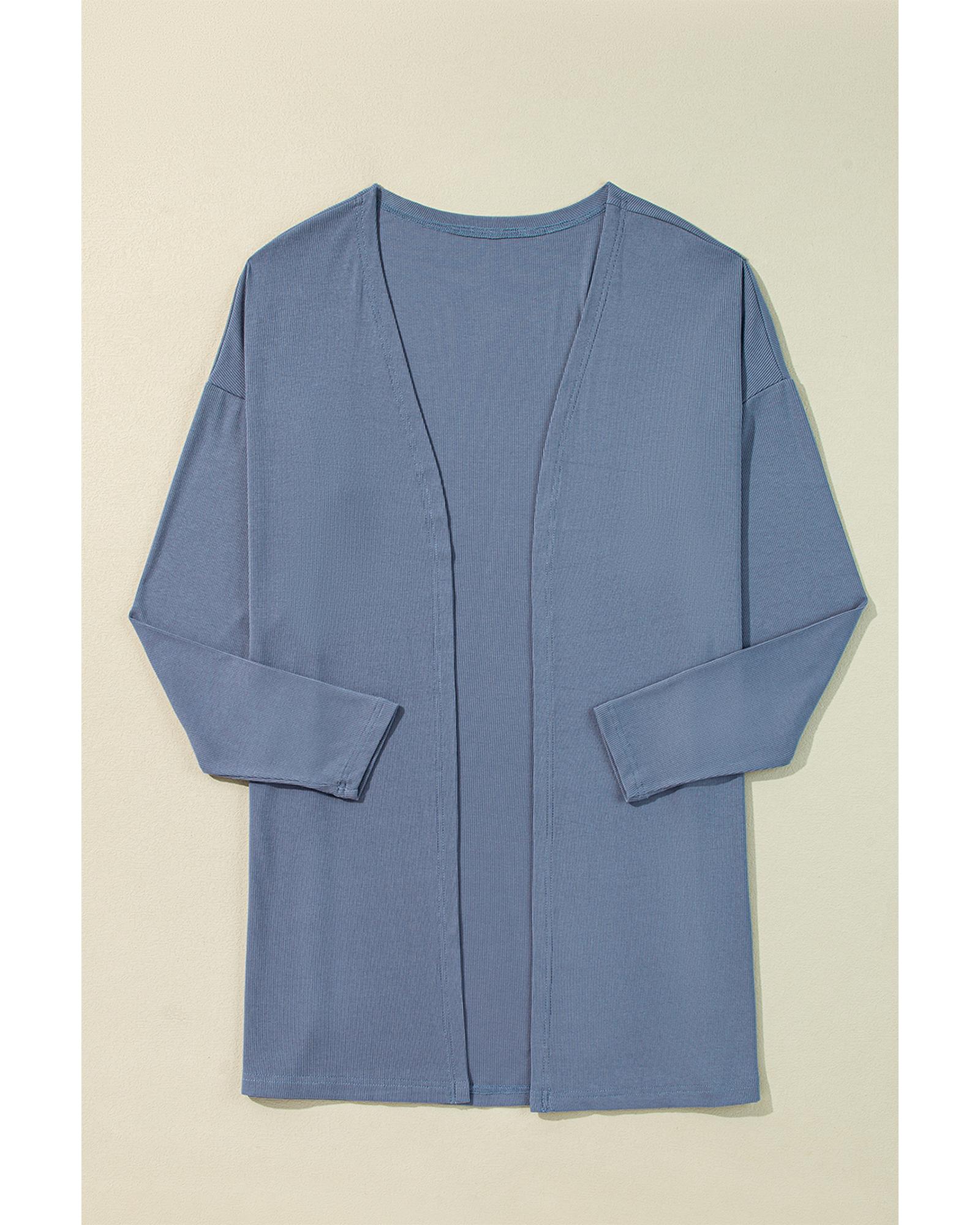 Ashleigh Blue Solid Color Rib Knit Open Front Tunic Cardigan – L