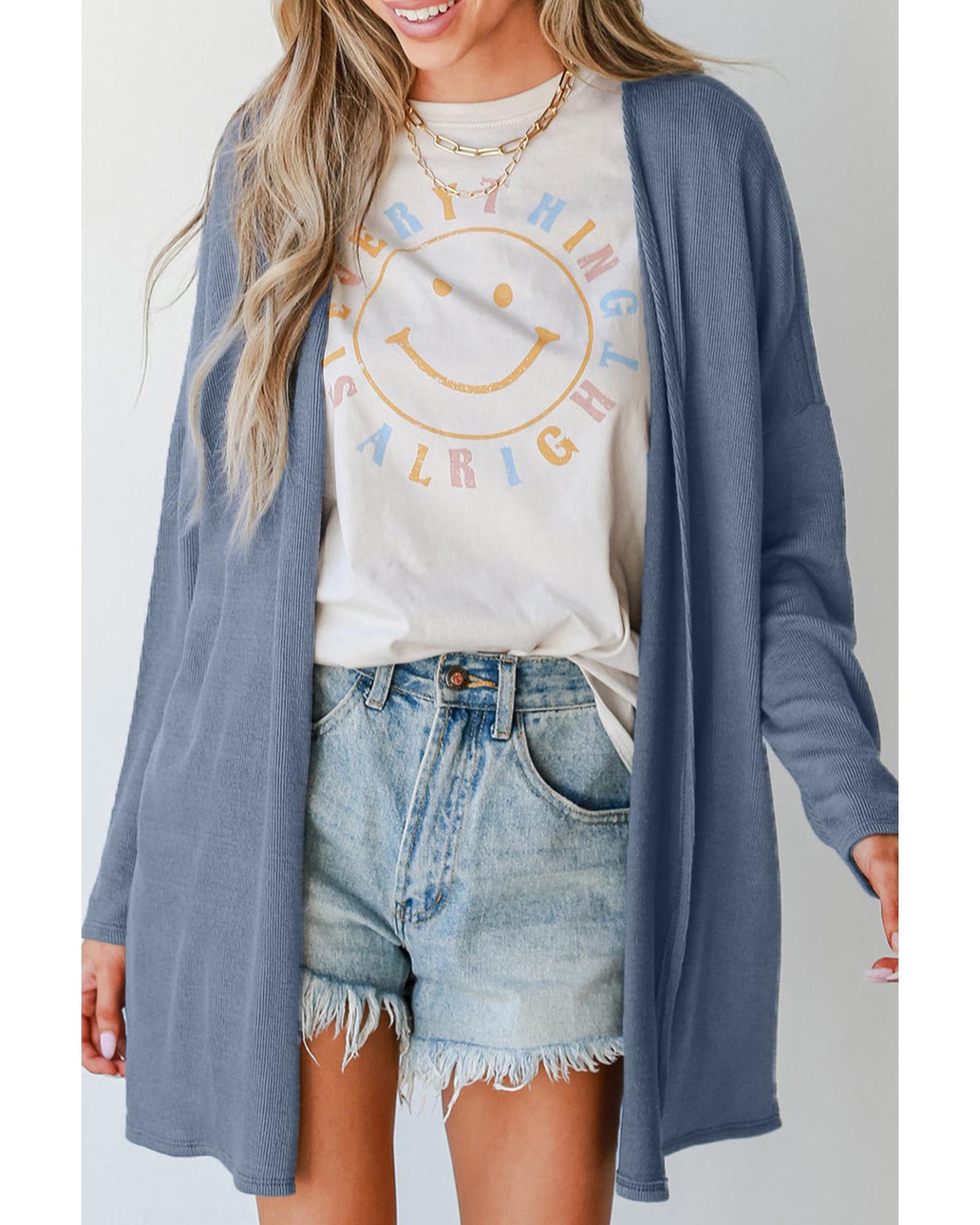 Ashleigh Blue Solid Color Rib Knit Open Front Tunic Cardigan – M
