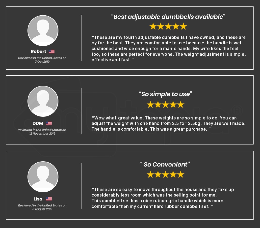 Giving you the versatility of 5 sets of standard dumbbells, your Ativafit set saves you on the initial outlay cost as well as being much more compact to store! With superior design and build quality, it should come as no surprise that Ativafit are leaders in the U.S. market. While other adjustable dumbbell models have a plastic locking system Ativafit utilises a secure high-tensile steel design