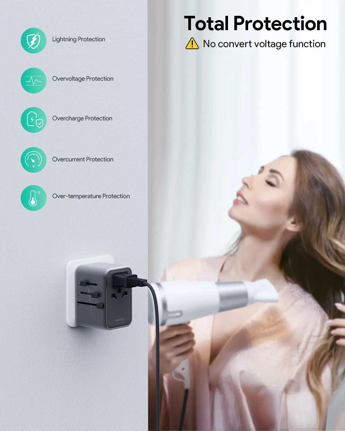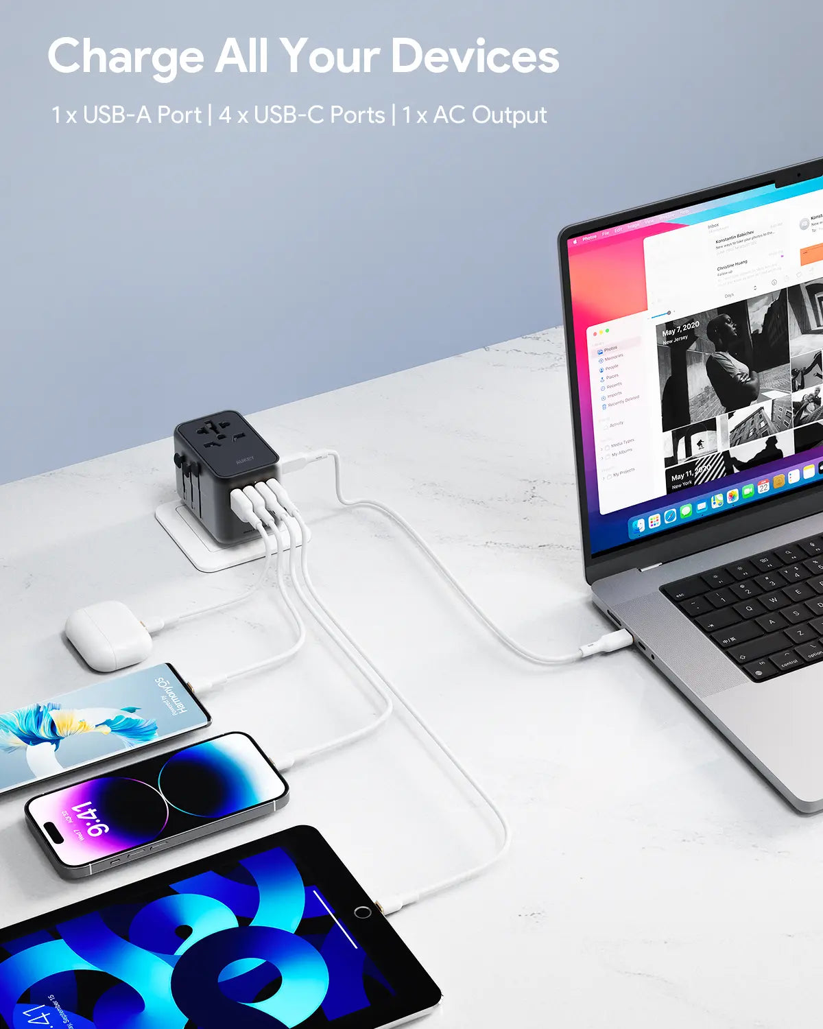 Aukey Travel Mate 100W GaN Universal Adapter with USB ports (PA-TA09A)