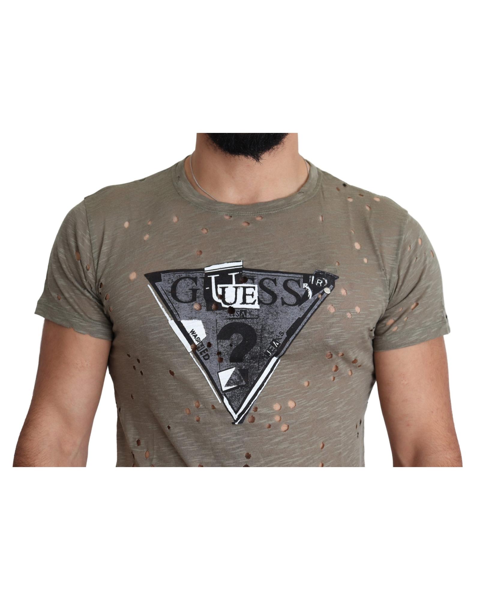 Authentic Guess Brown Cotton Stretch T-Shirt M Men