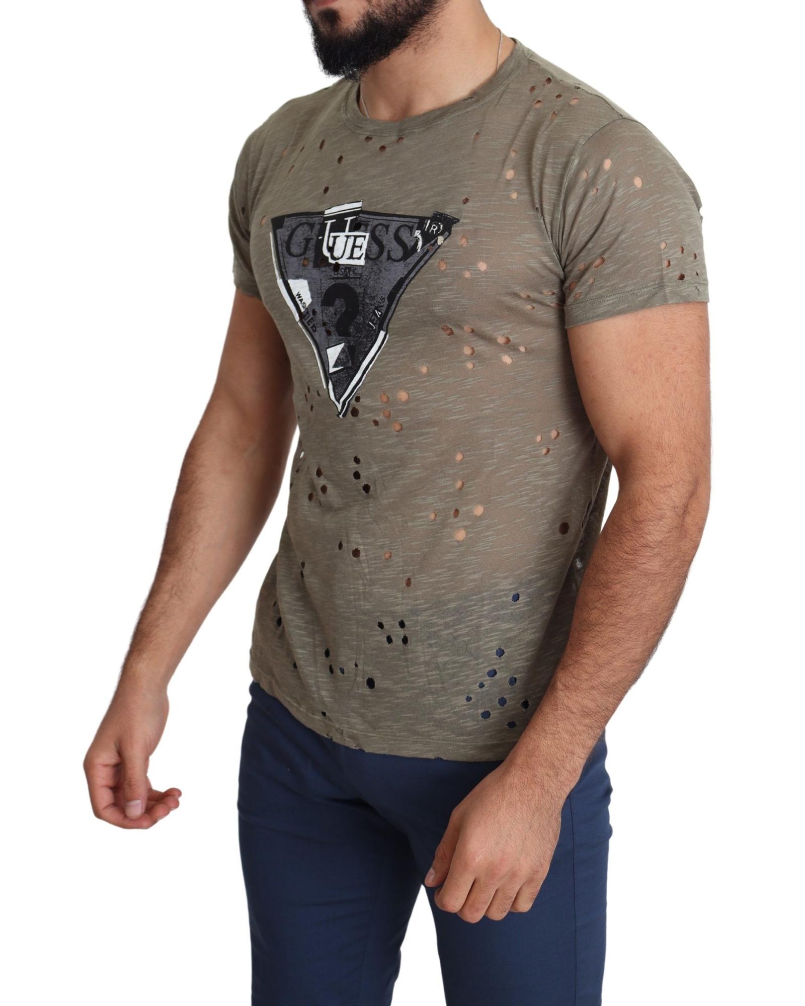 Authentic Guess Brown Cotton Stretch T-Shirt M Men