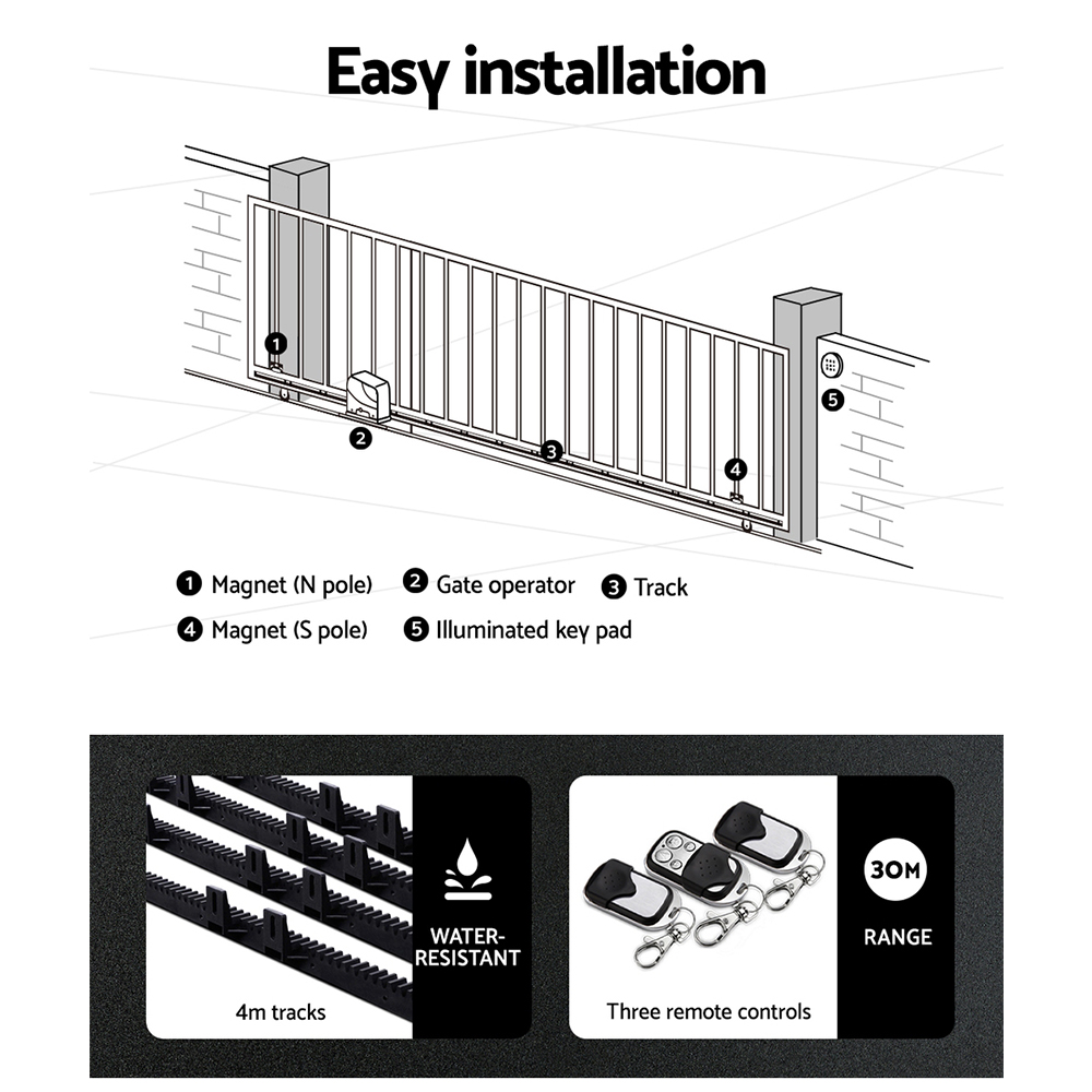 Automatic Sliding Gate Opener Kit 10W Solar 4M 600KG