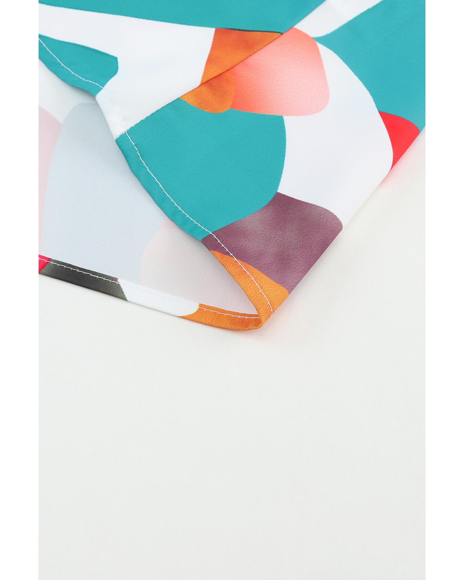 • Multicolor Square Neck Abstract Print Short Sleeve Blouse
