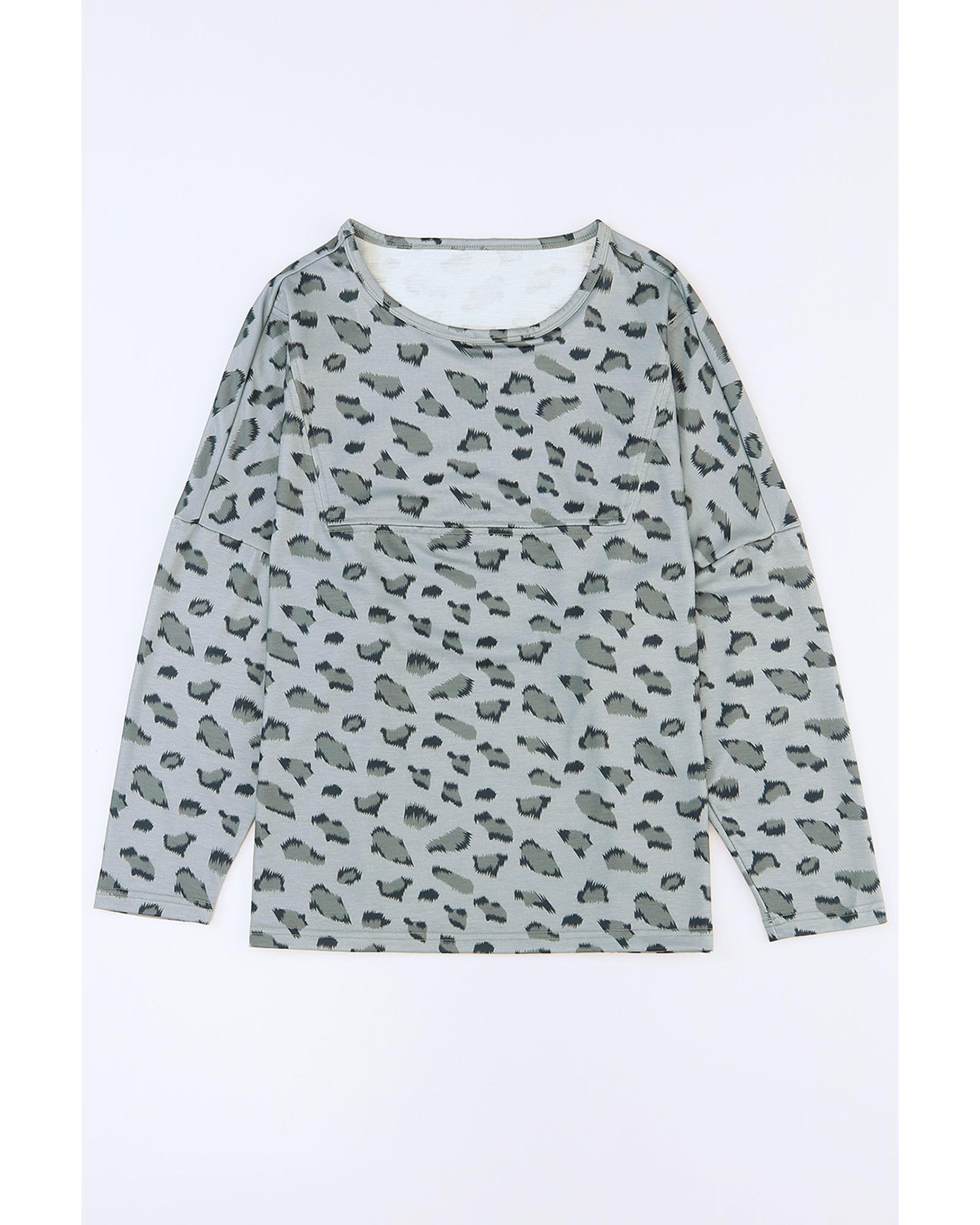 Azura Exchange Animal Print Stitching Loose Long Sleeve Top – S