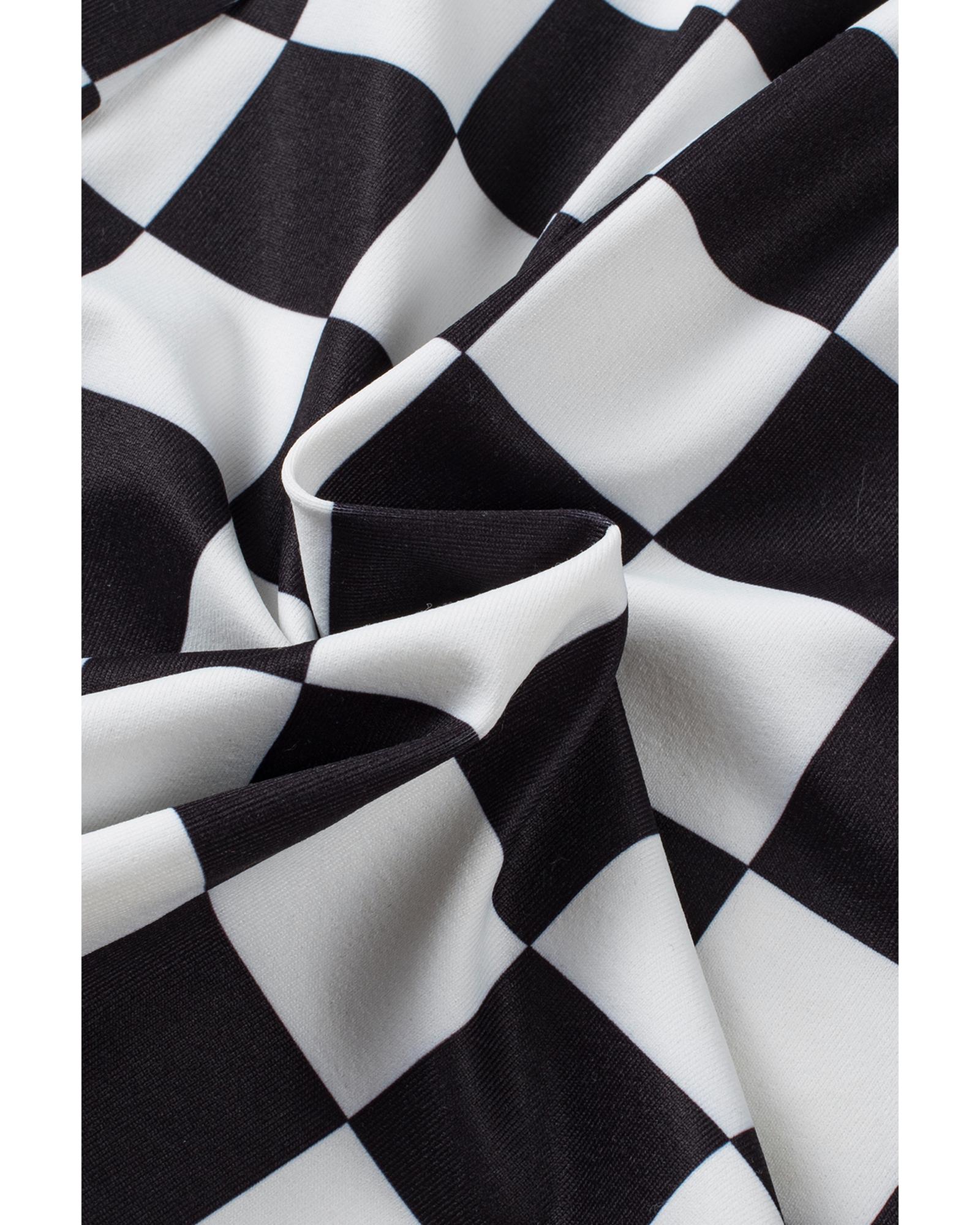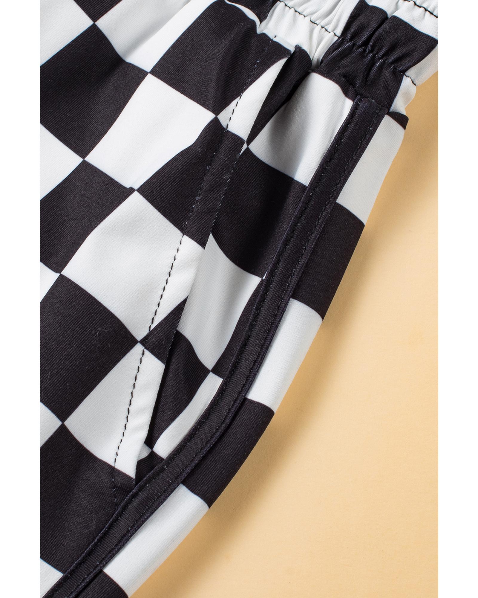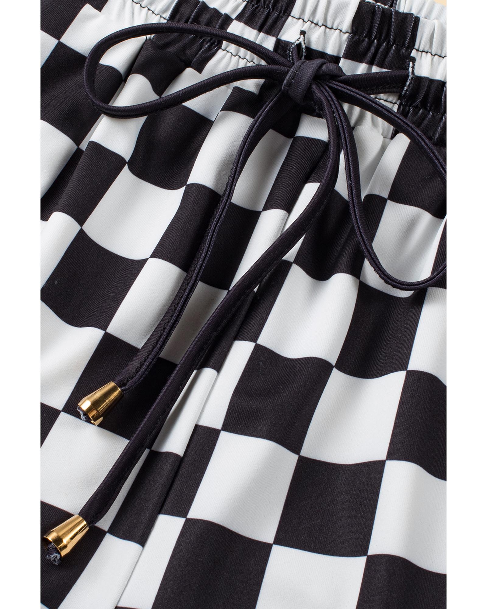 Azura Exchange Black Checkered Drawstring Elastic Waist Casual Shorts – M