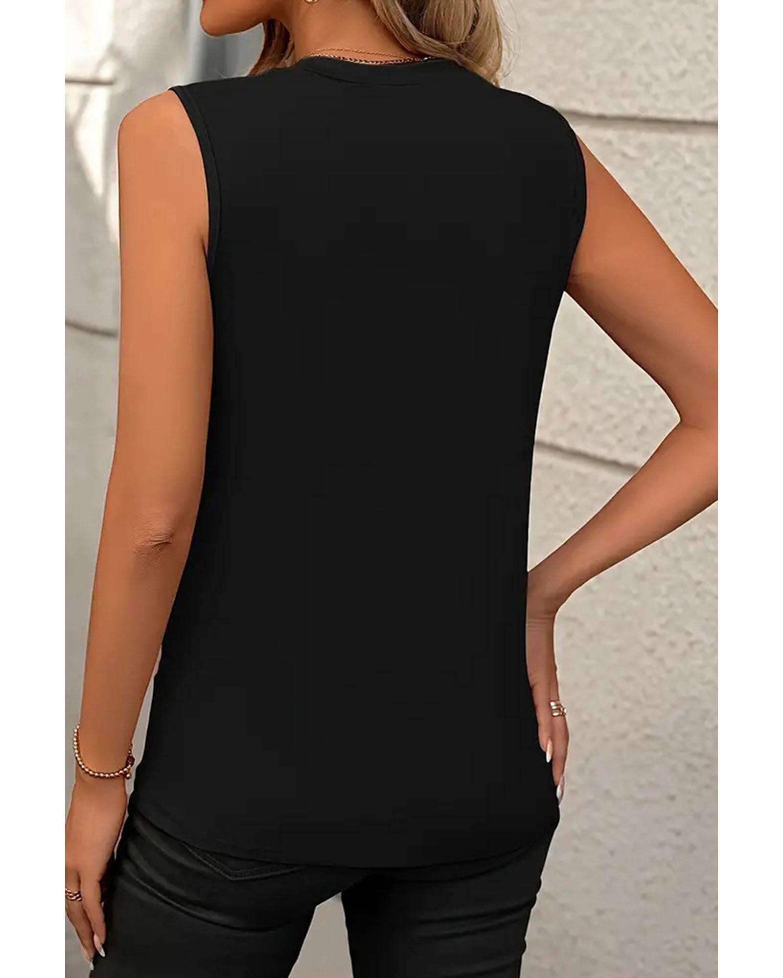 Azura Exchange Black Crew Neck Pleated Tank Top – XL