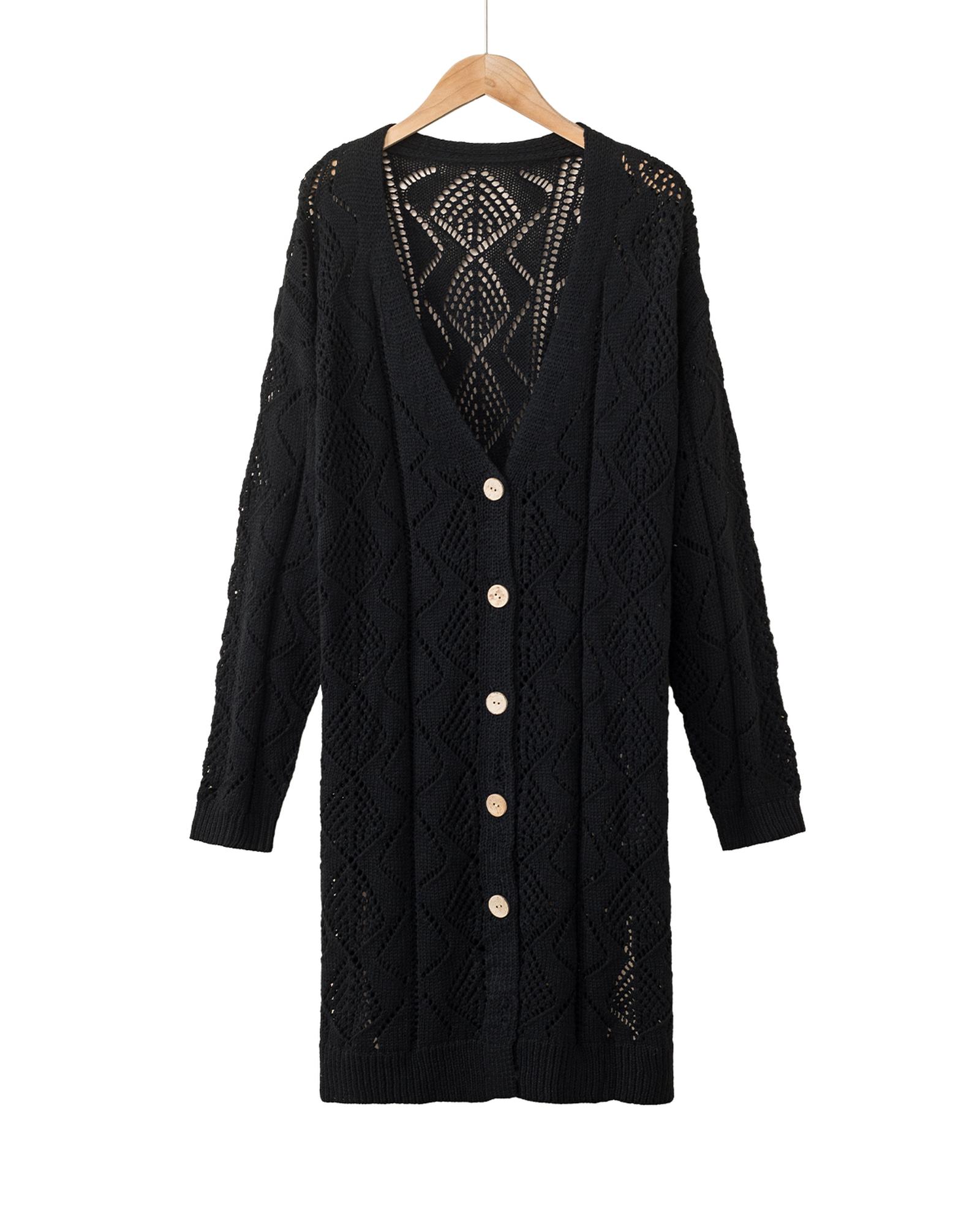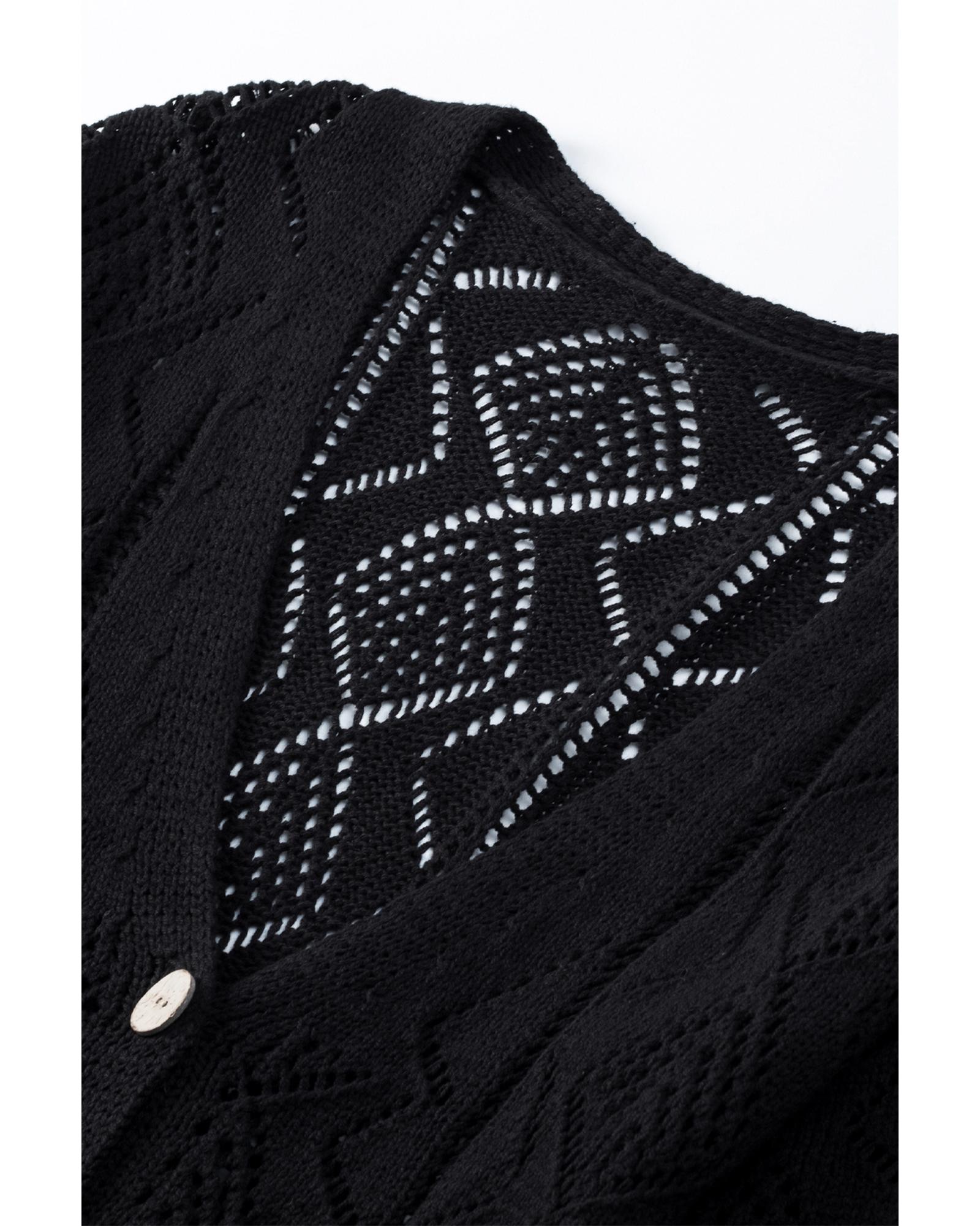 Azura Exchange Black Hollow-out Openwork Knit Cardigan – L