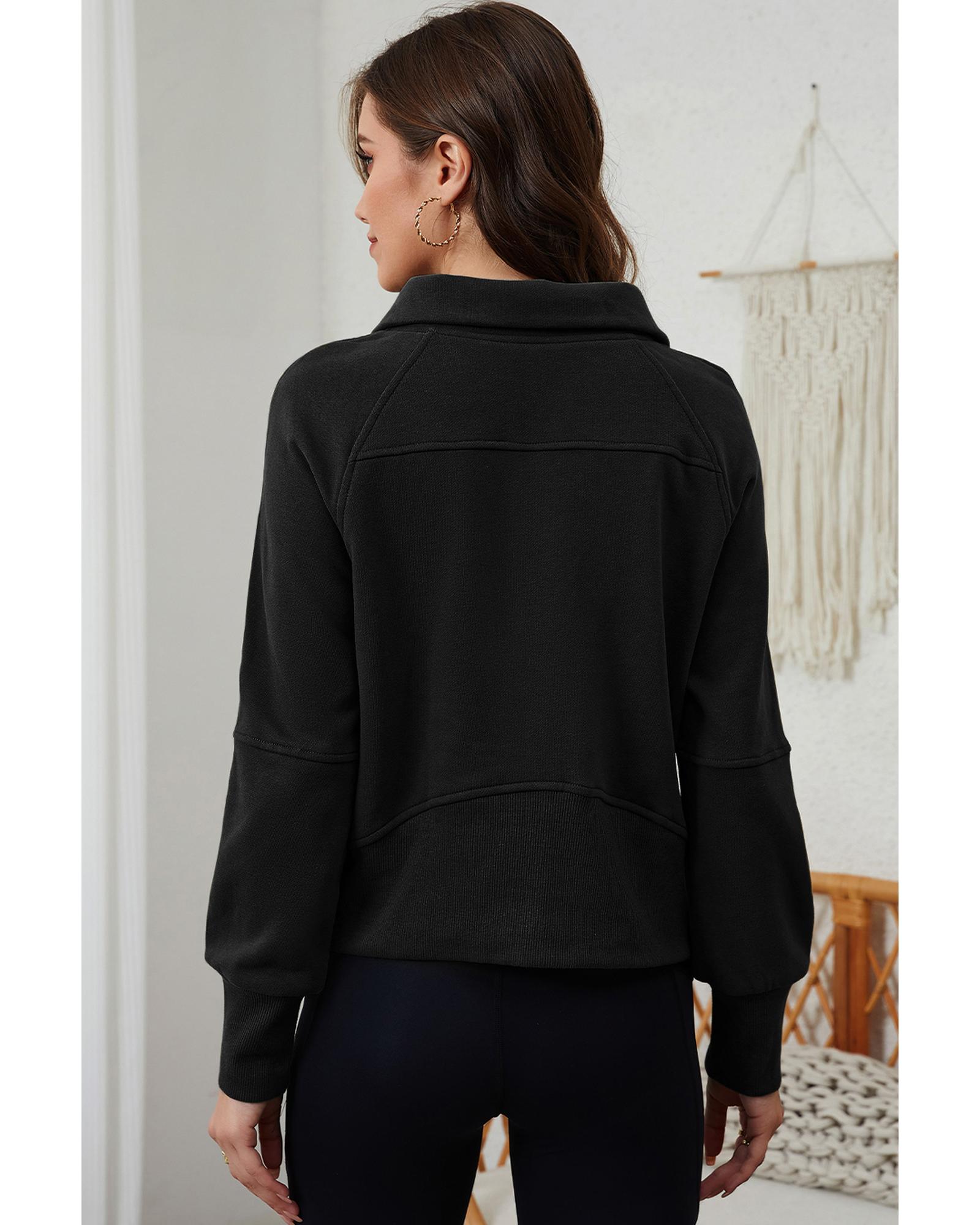 • Black Zip Up Stand Collar Ribbed Thumbhole Sleeve Sweatshirt