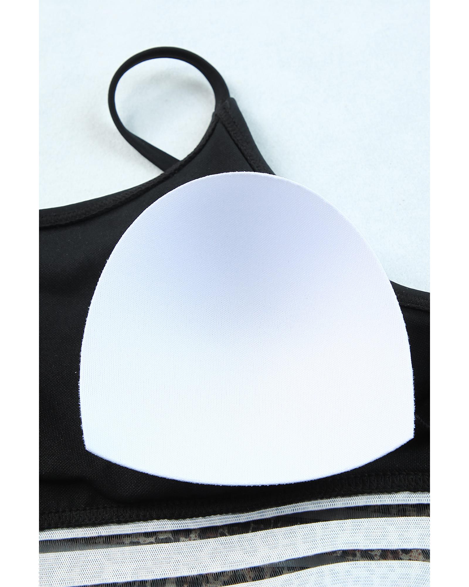Azura Exchange Black Rose Leopard Mesh Trim 2pcs Bikini Swimsuit – M