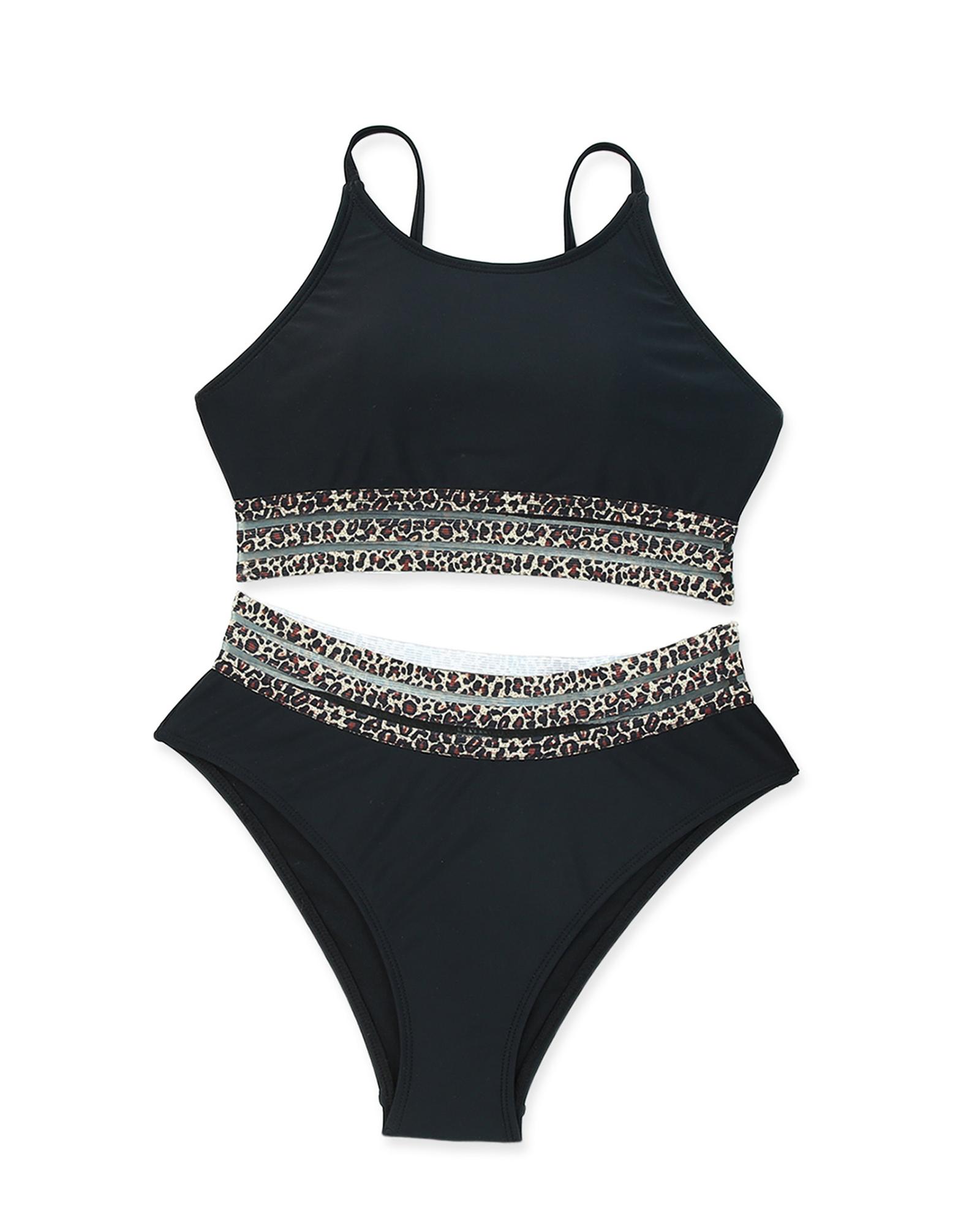 Azura Exchange Black Rose Leopard Mesh Trim 2pcs Bikini Swimsuit – S