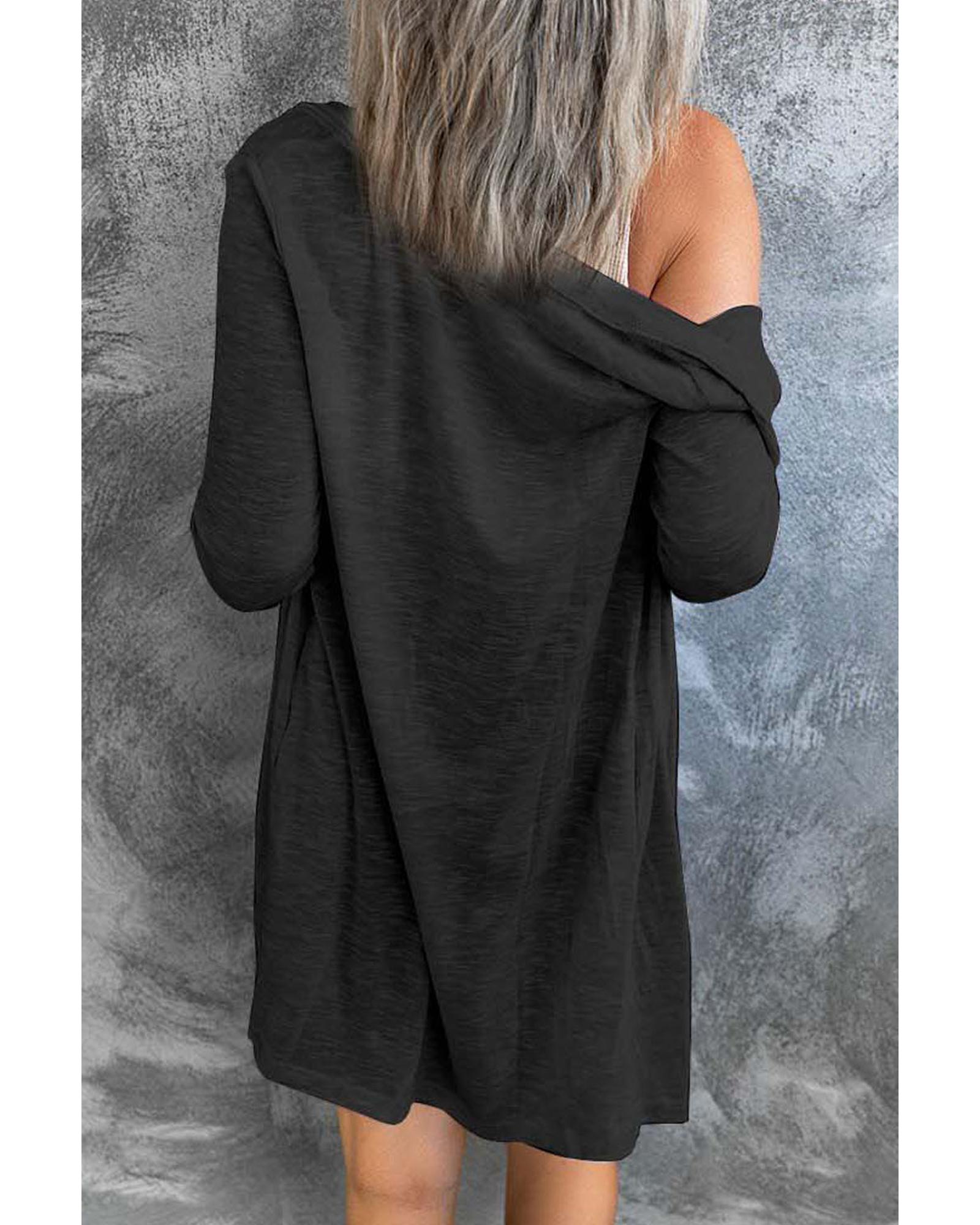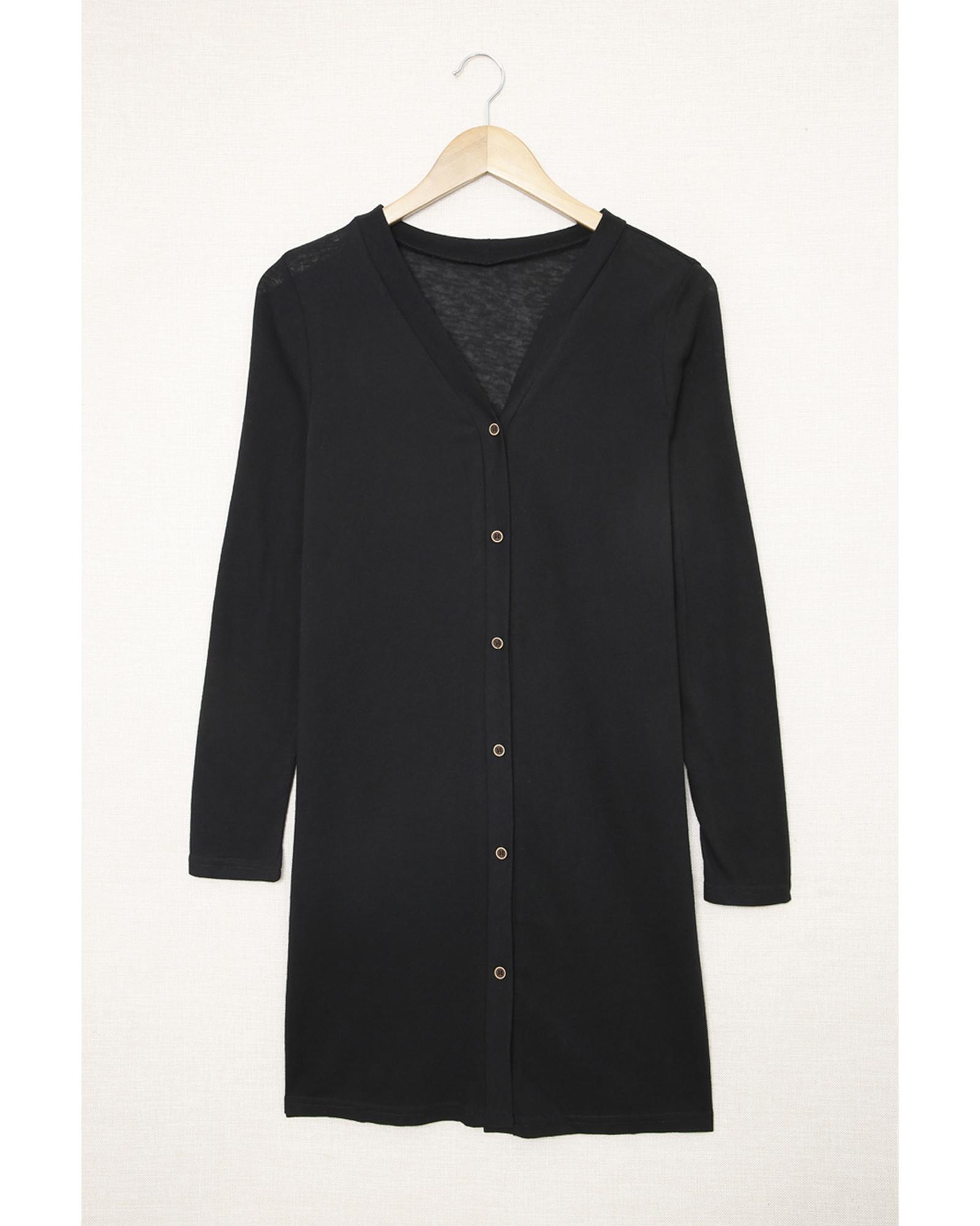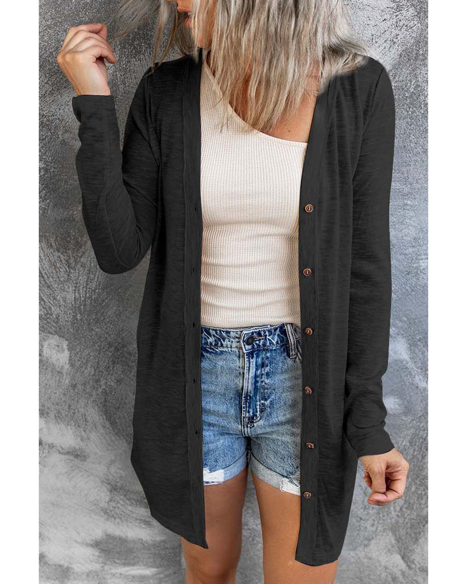 Azura Exchange Black Solid Color Open-Front Buttons Cardigan – S