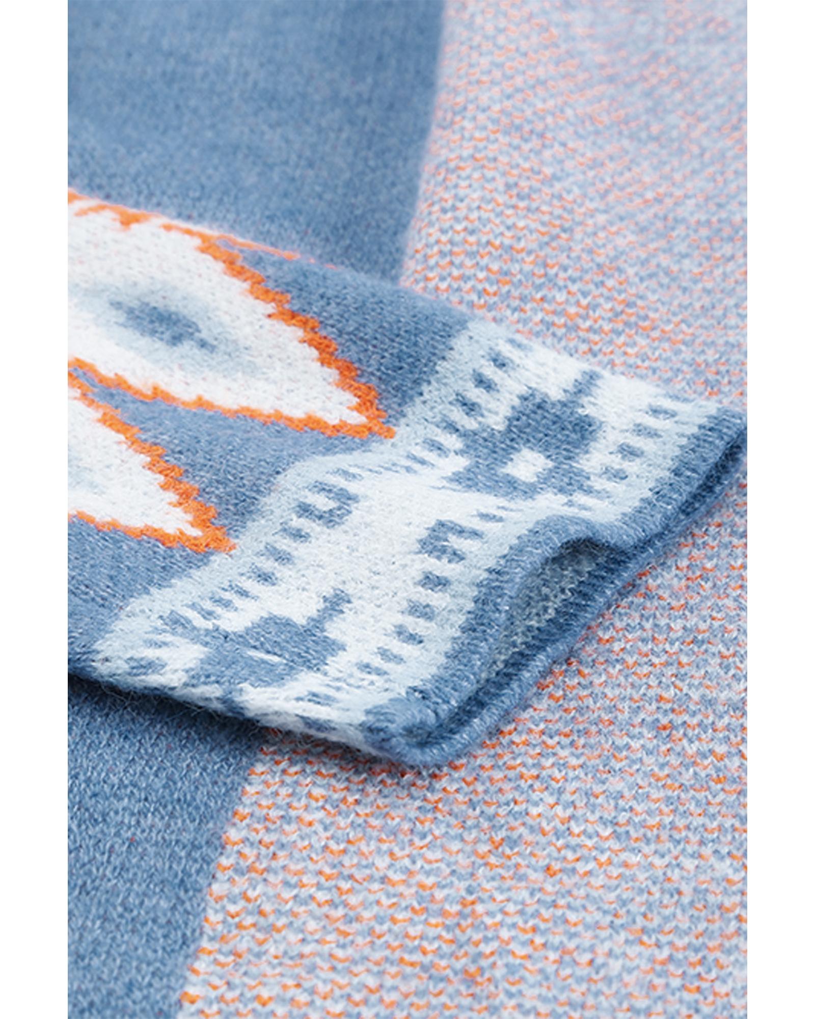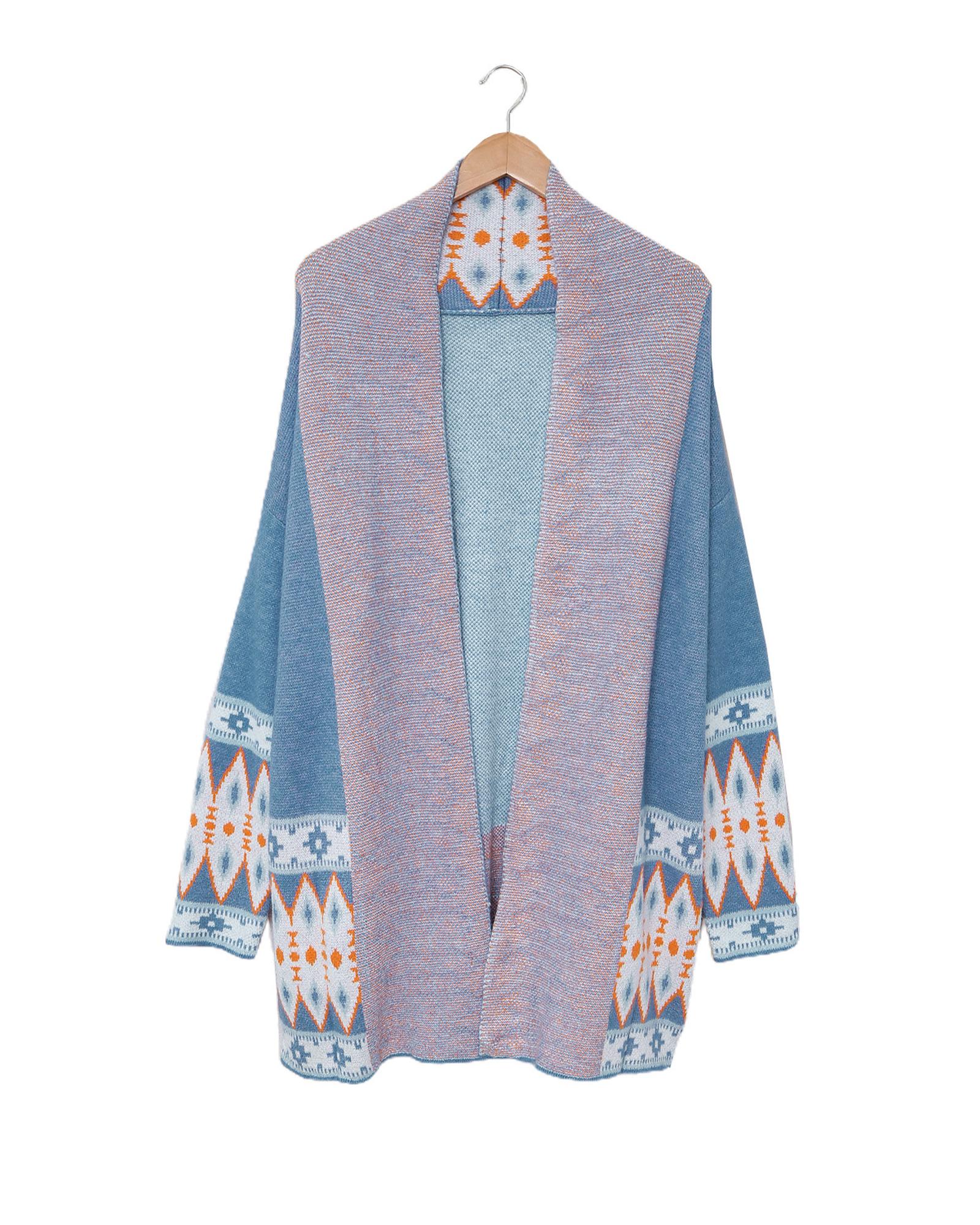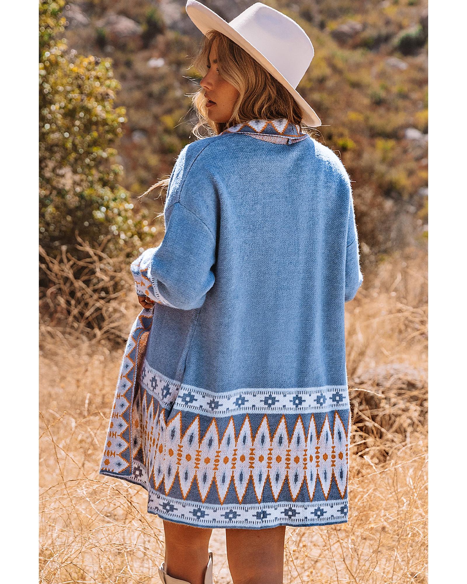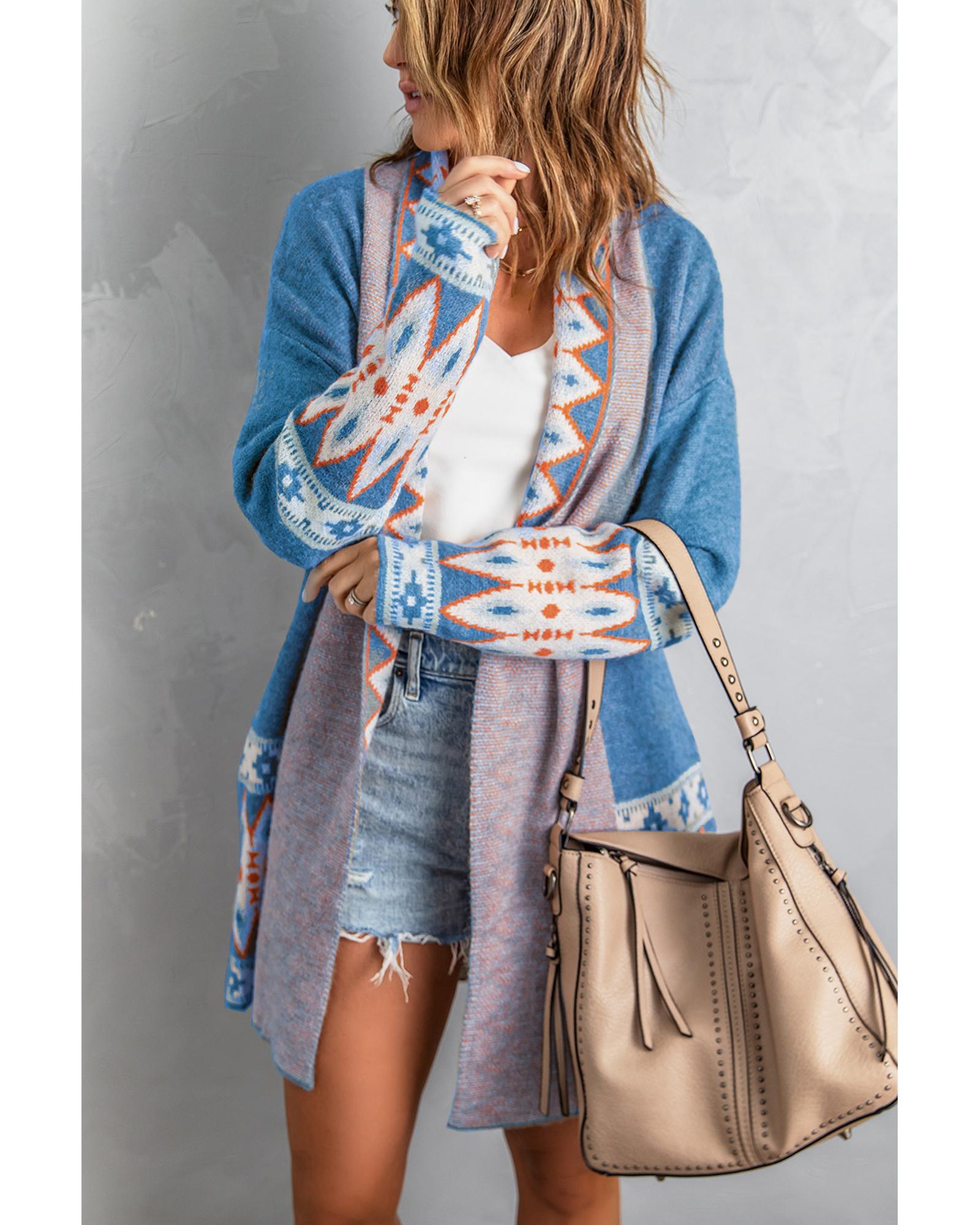 Azura Exchange Blue Aztec Print Open Front Knitted Cardigan – L