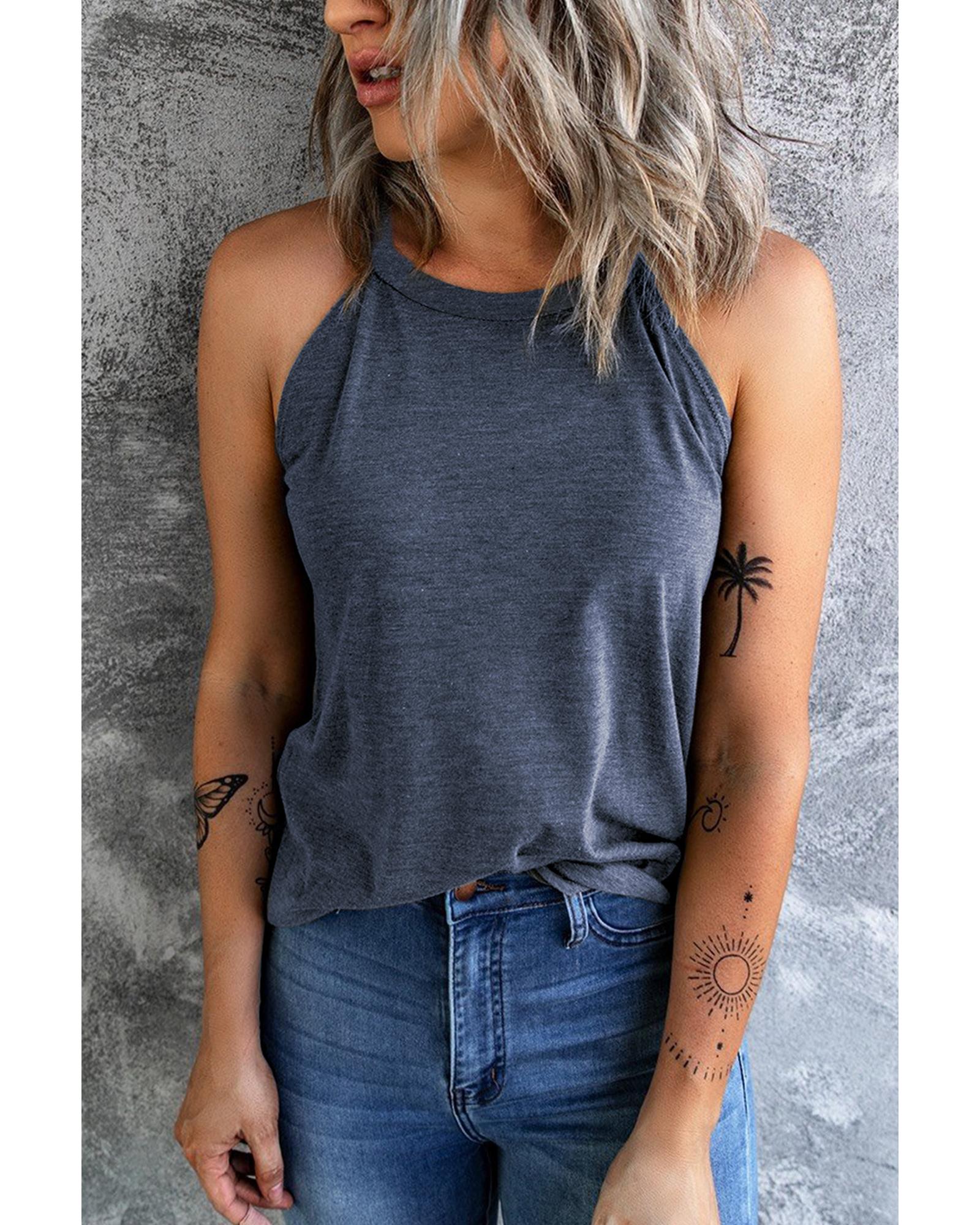 Azura Exchange Blue Solid Color Crew Neck Tank Top – 2XL