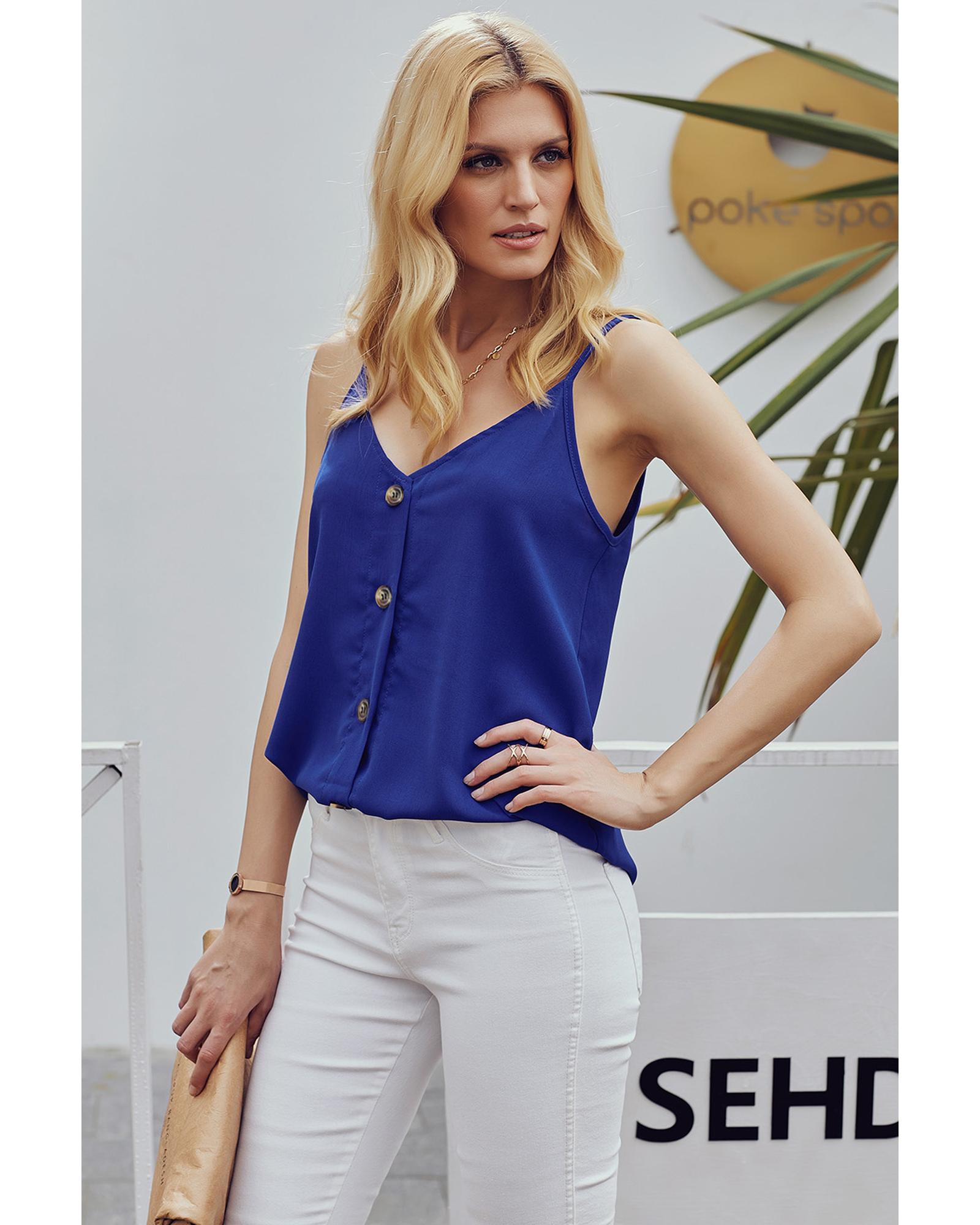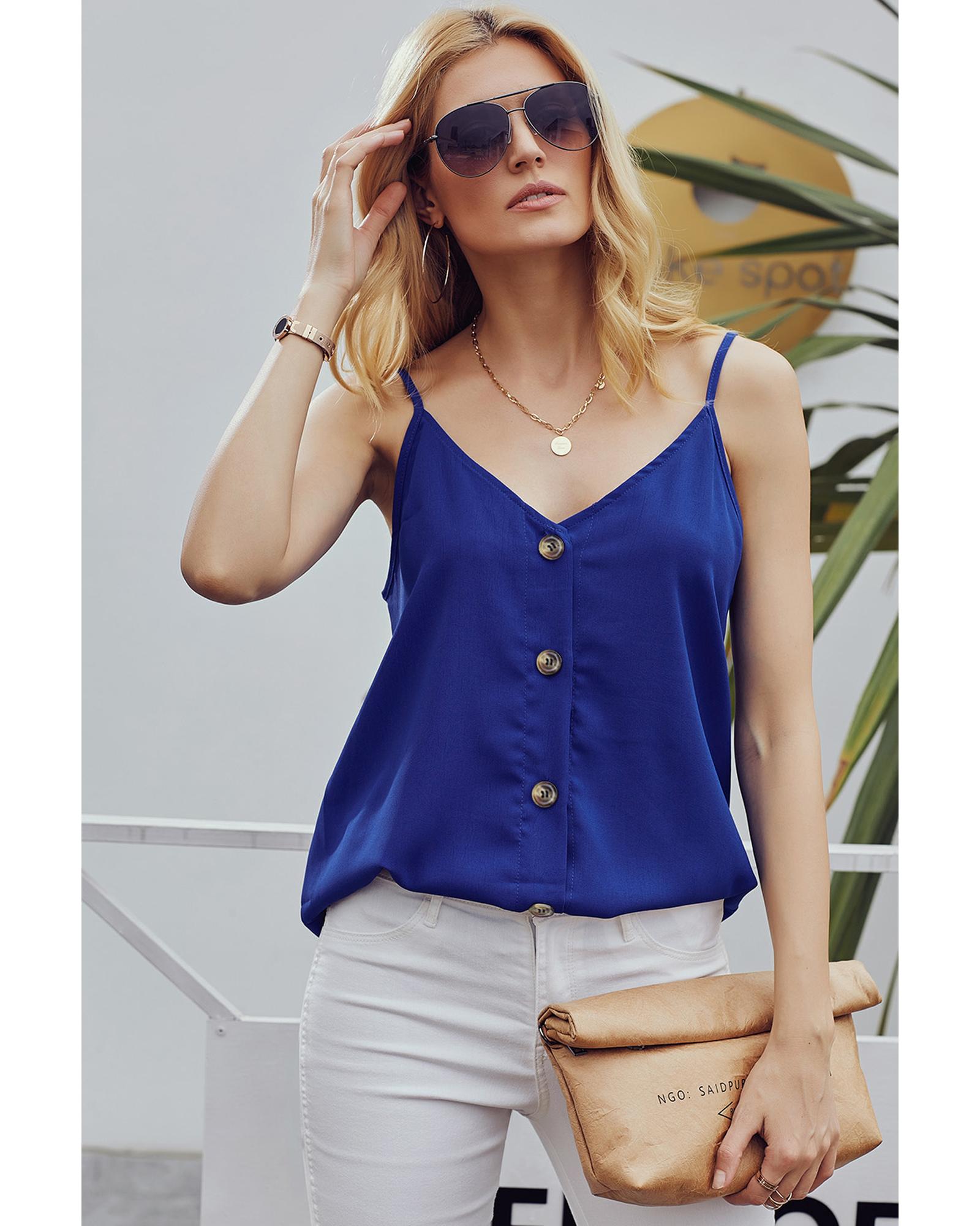 Azura Exchange Blue Spaghetti Strap Buttoned Tank Top – M