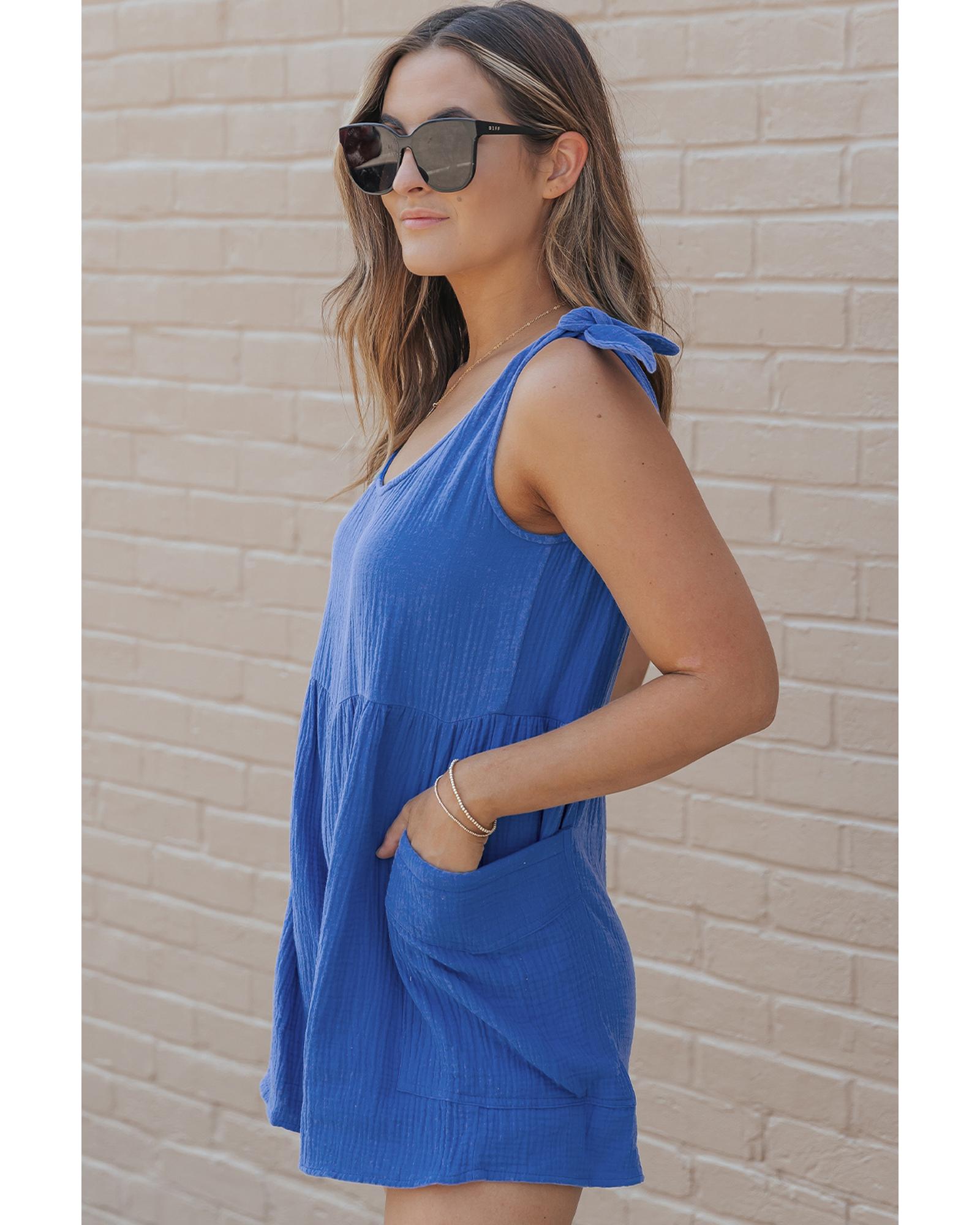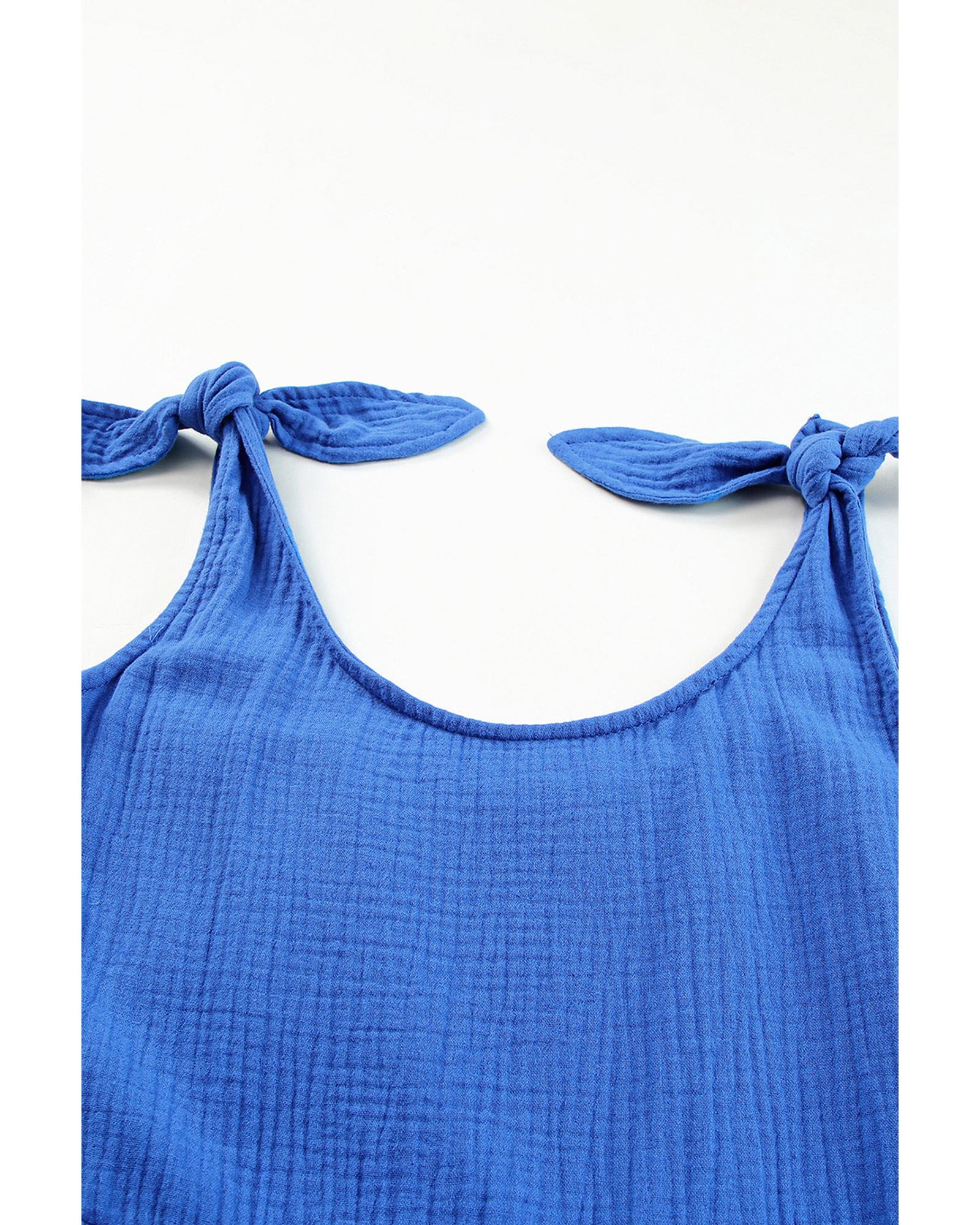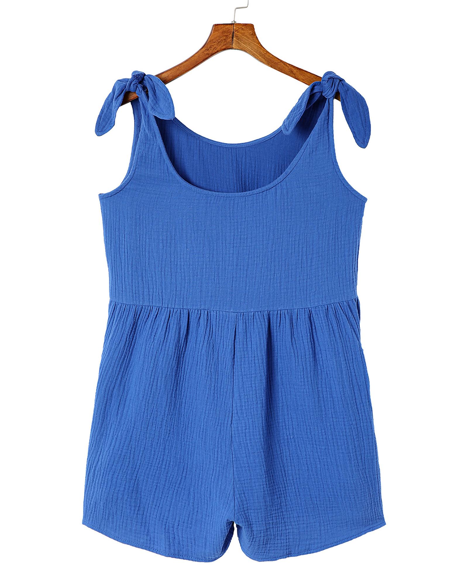 Azura Exchange Blue Textured Knotted Straps High Waist Wide Leg Romper – XL
