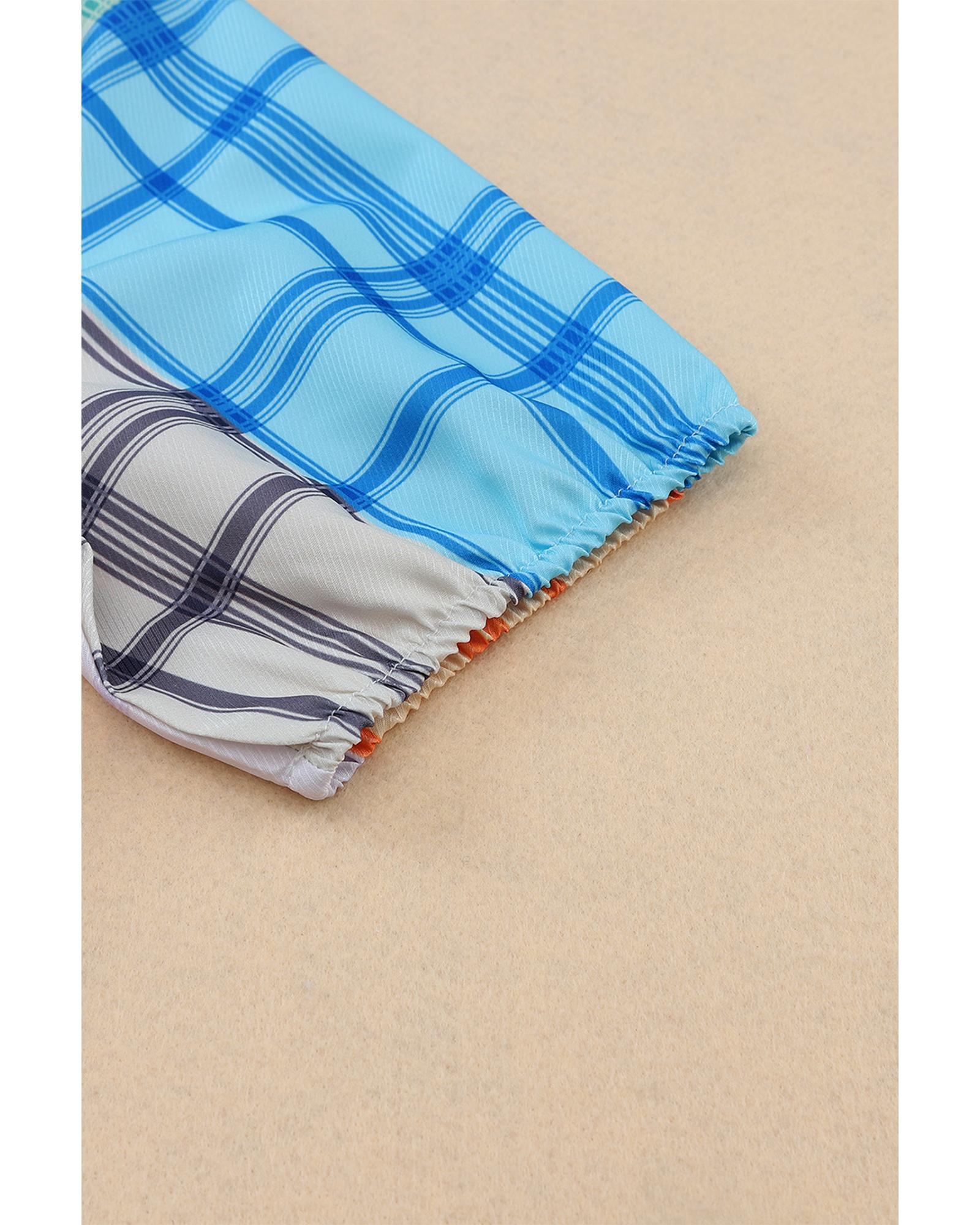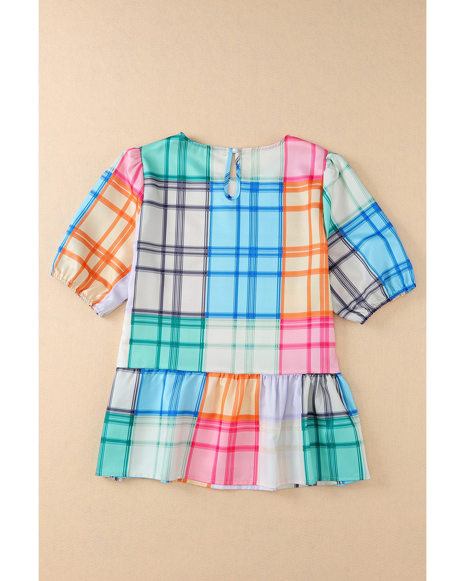 Azura Exchange Bold Plaid Color Block Puff Sleeve Peplum Top - S