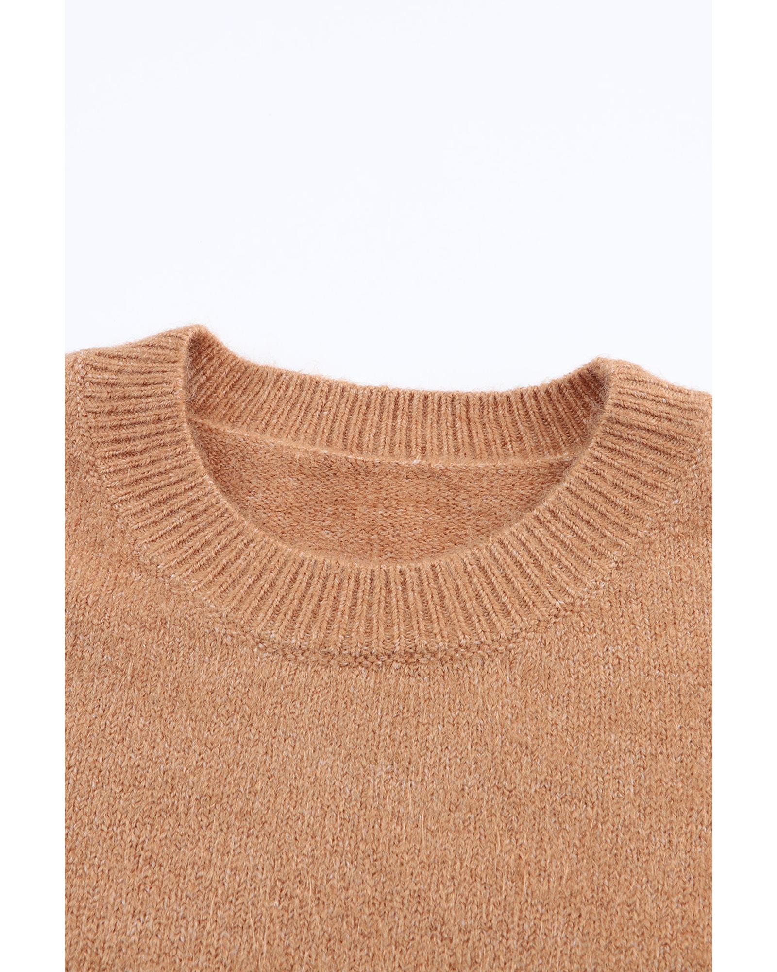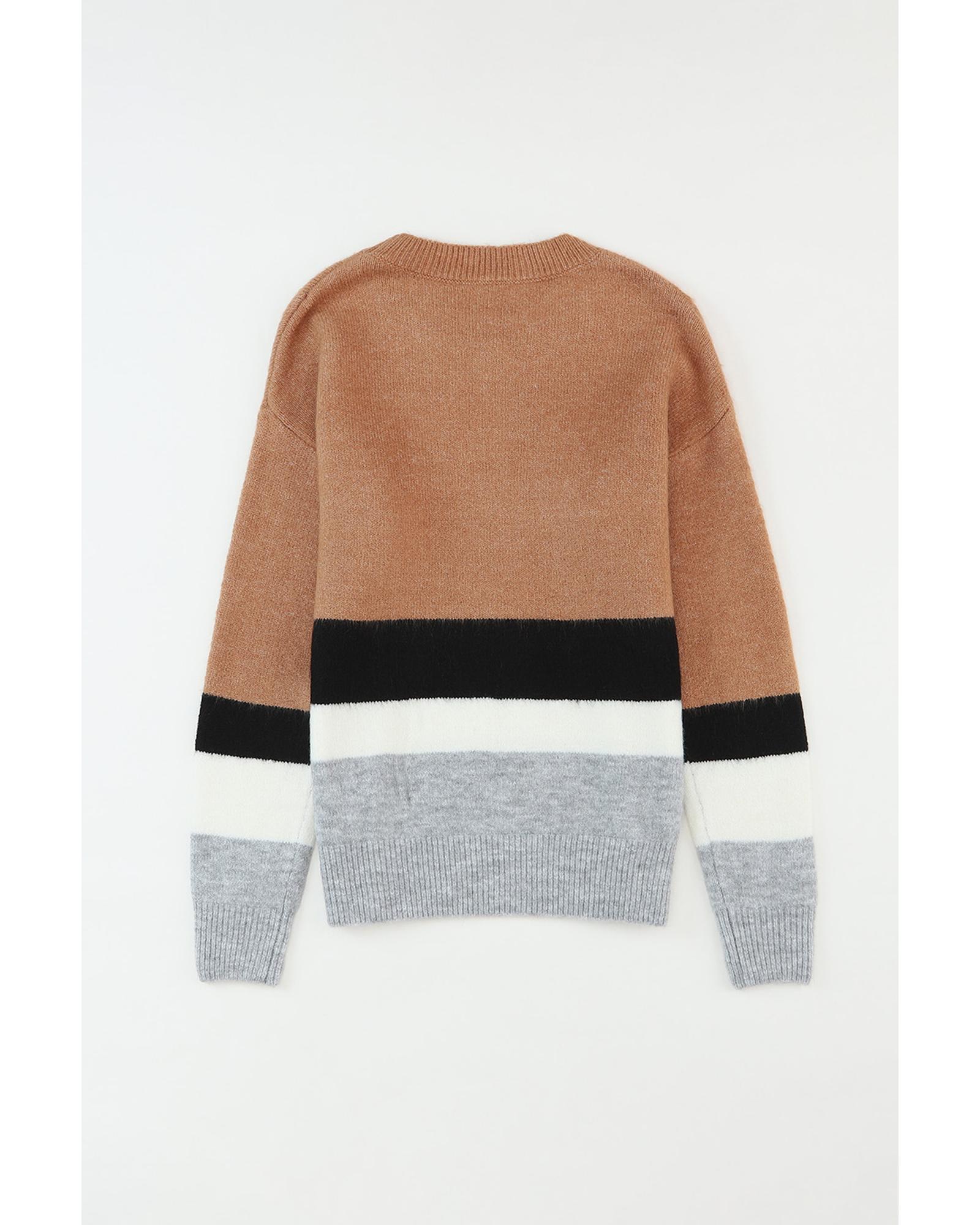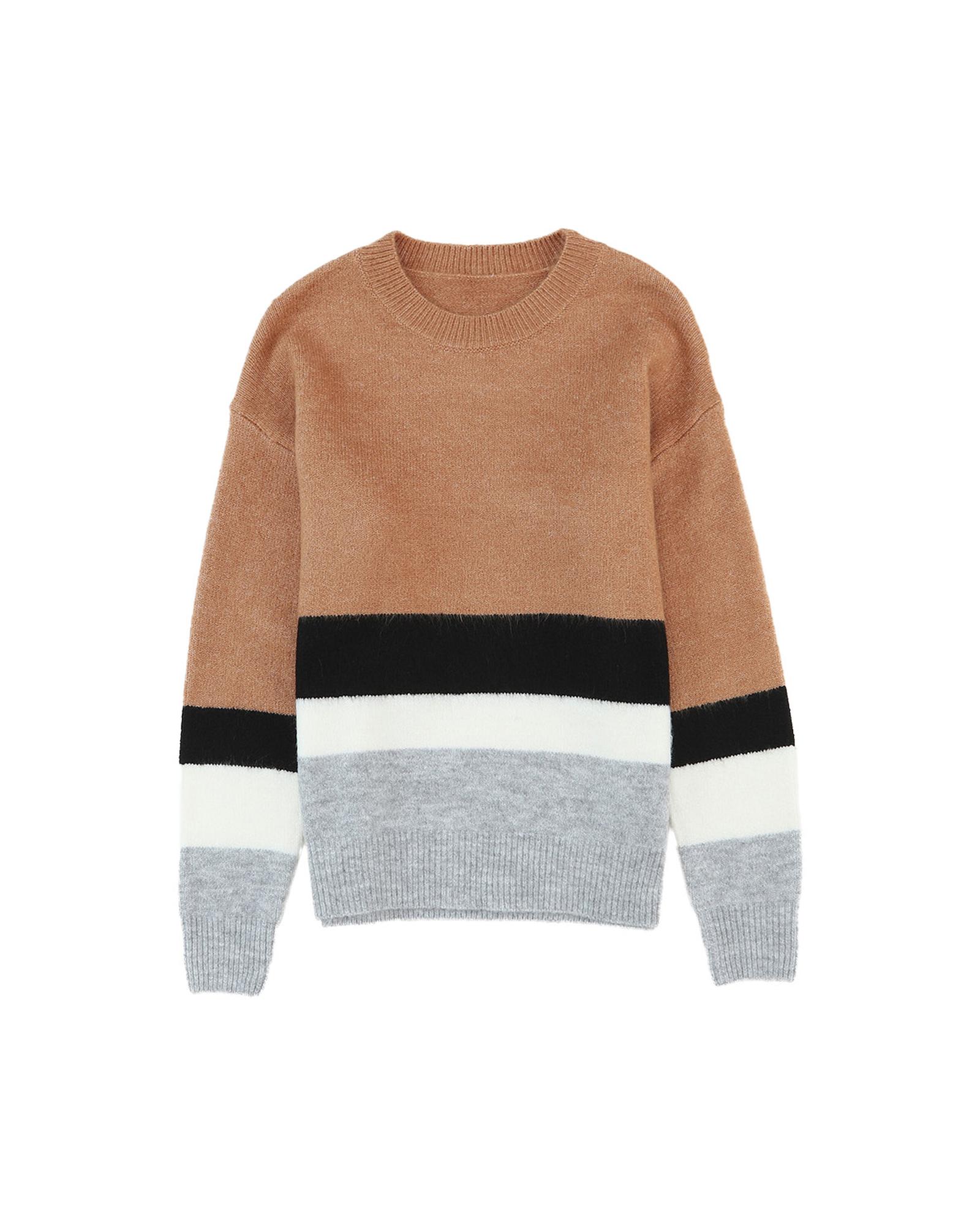 Azura Exchange Brown Color Block Striped Ribbed Knit Sweater – M
