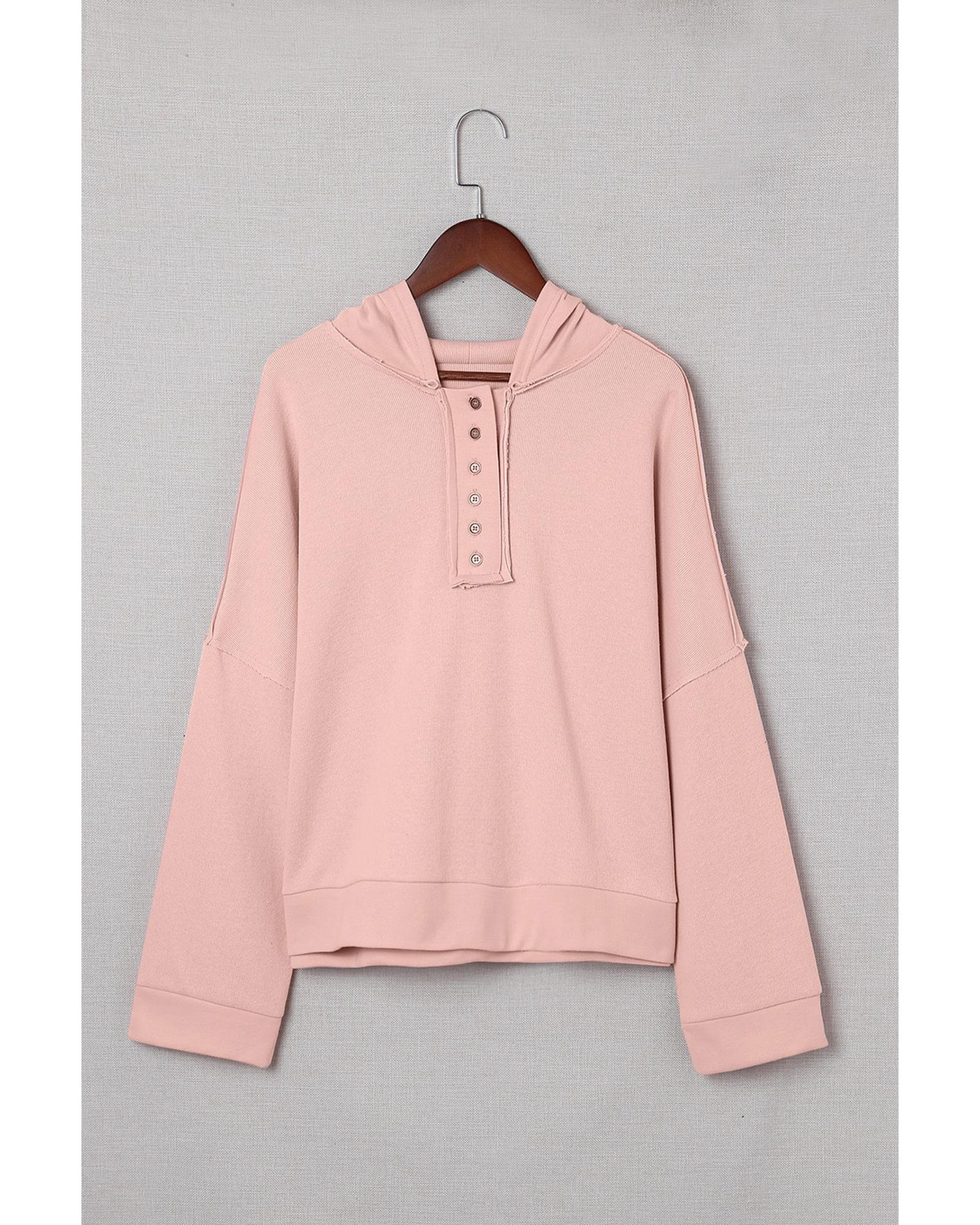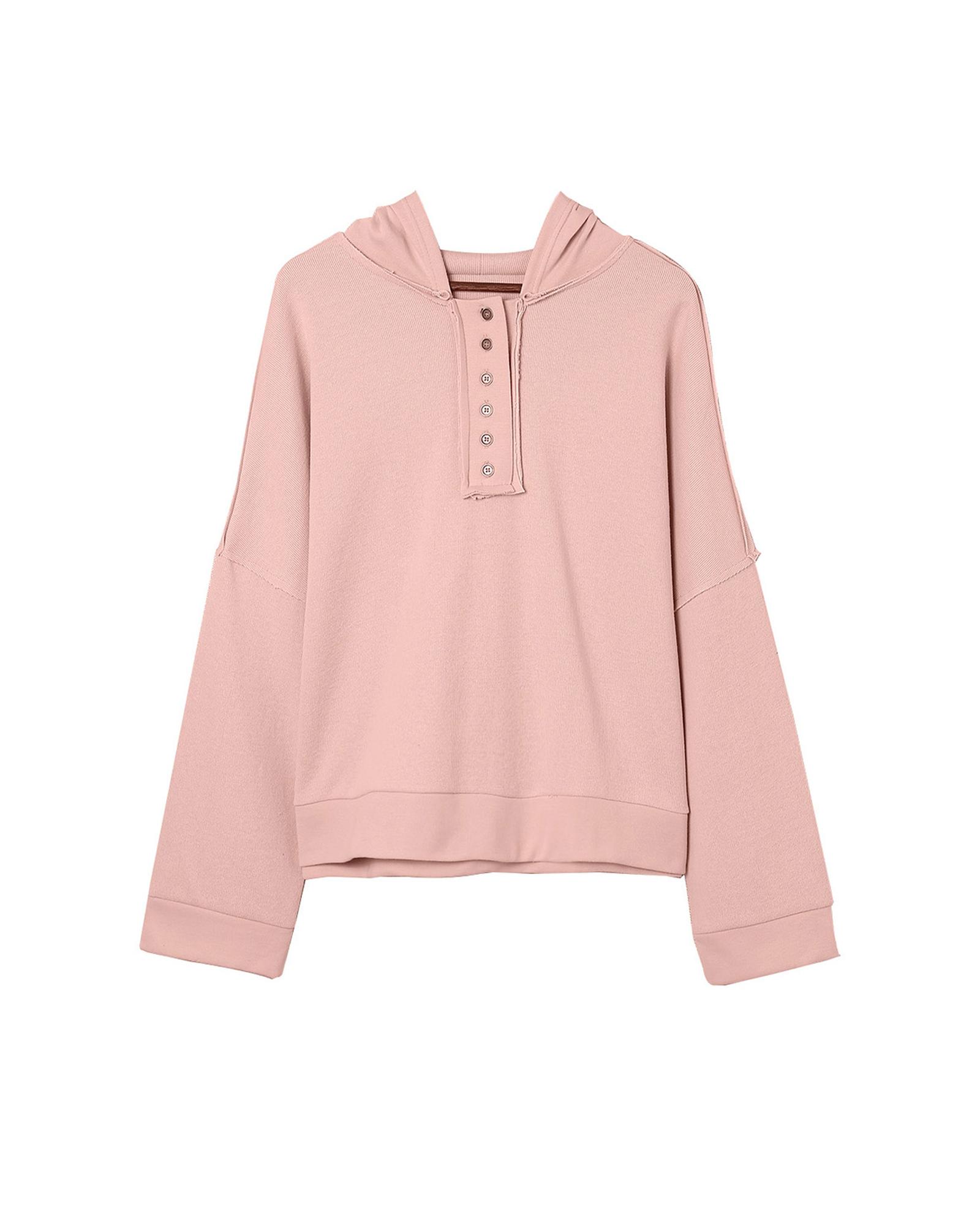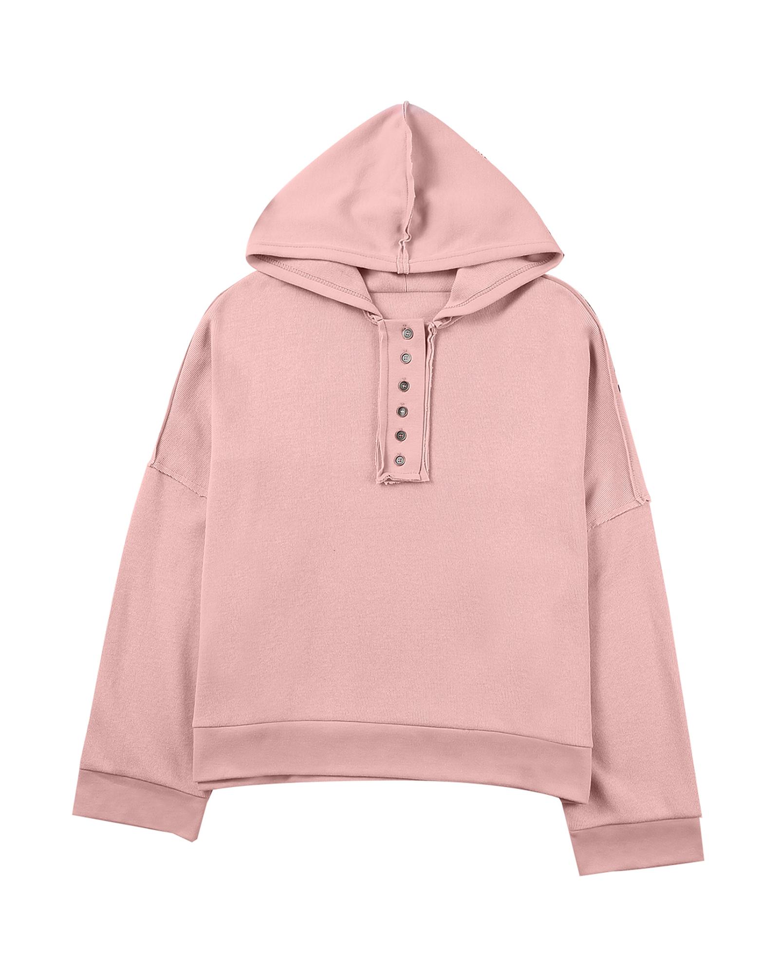 - Stylish Casual Button Solid Patchwork Trim Hoodie