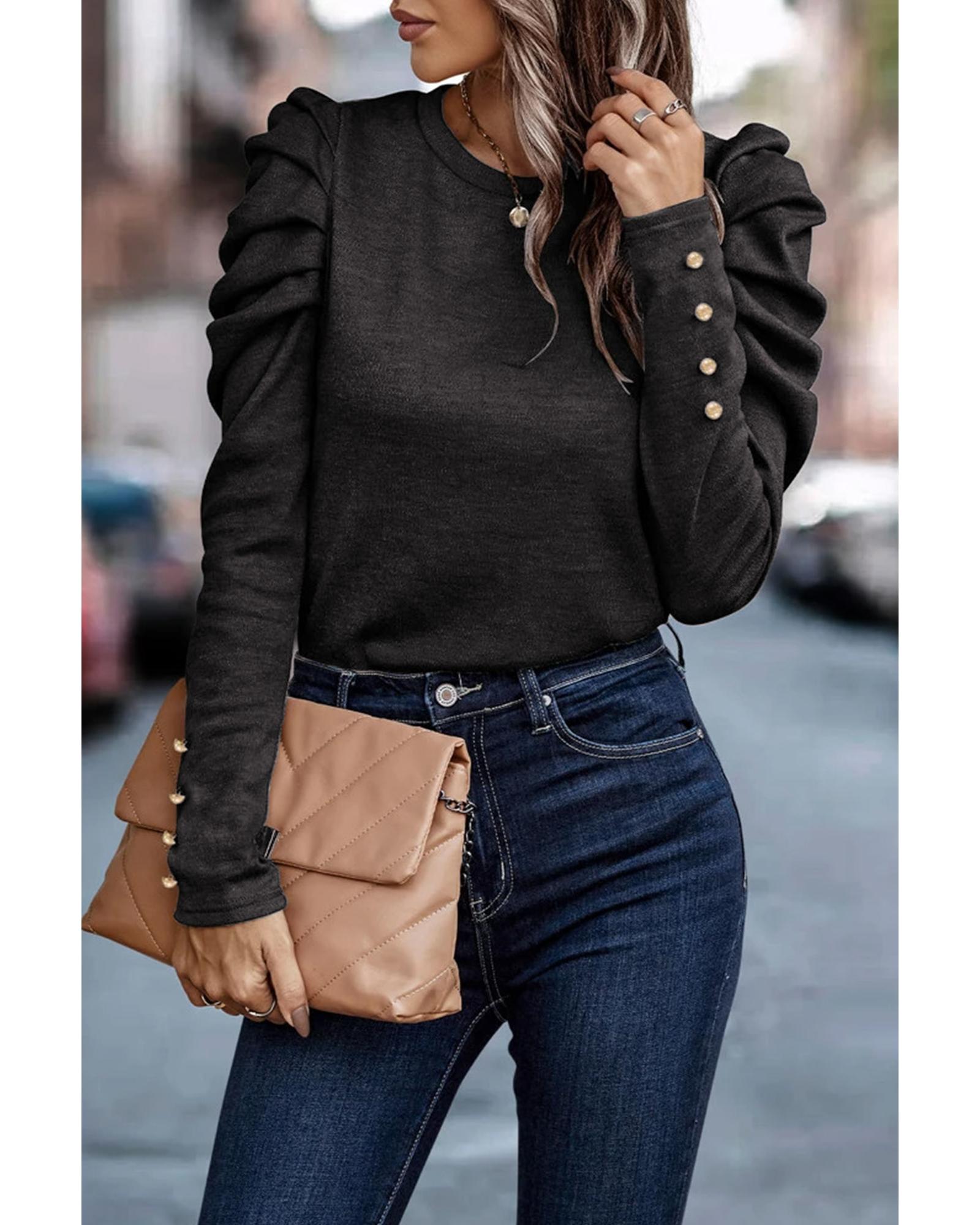 Azura Exchange Buttoned Puff Long Sleeve Sheath Top – S
