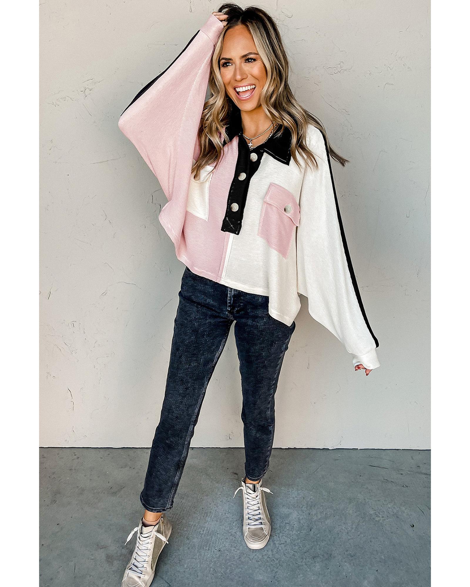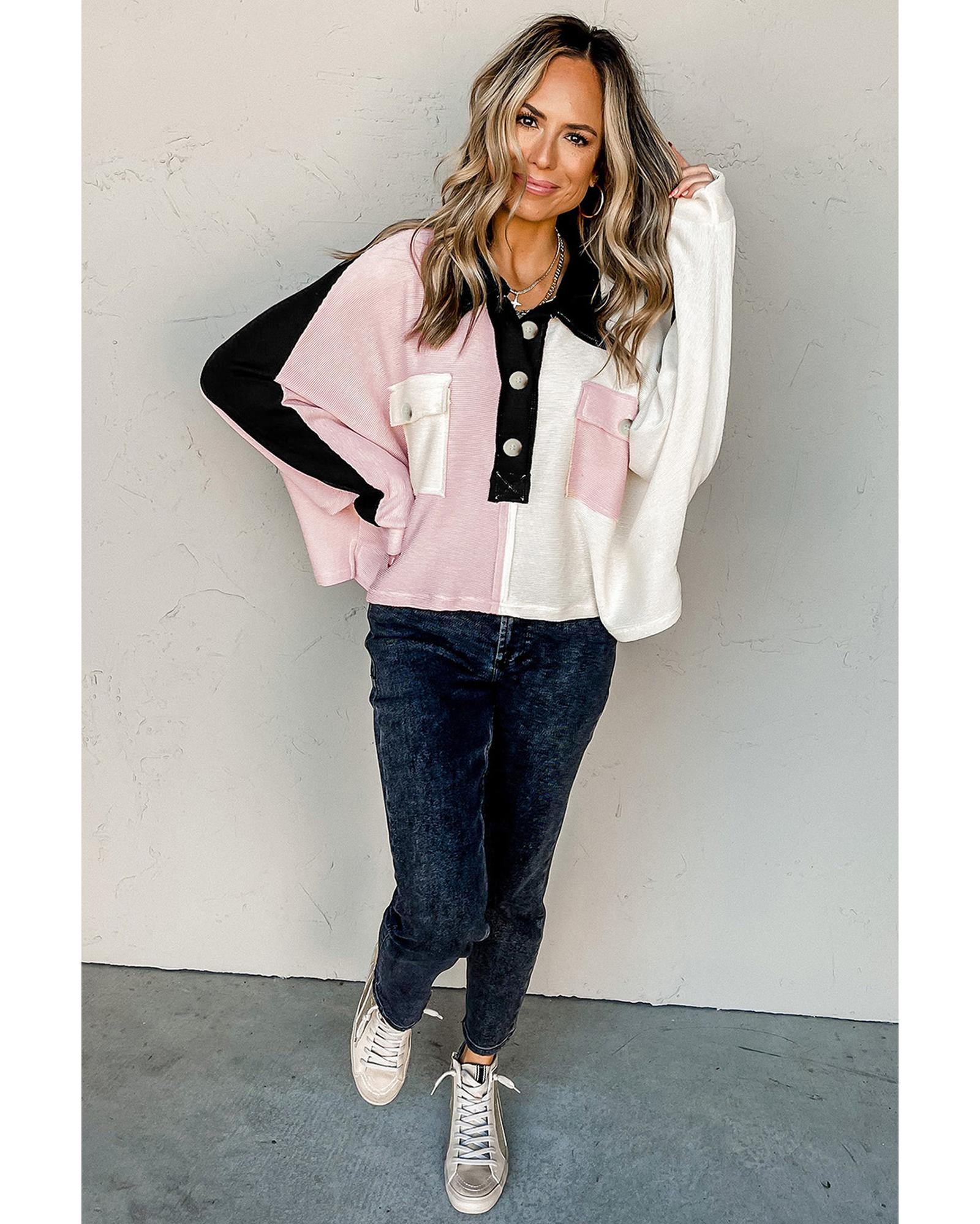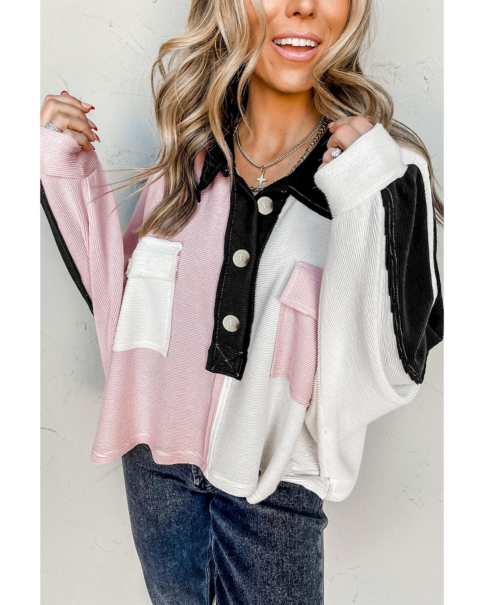 Azura Exchange Colorblock Flap Pockets Henley Collared Top – L