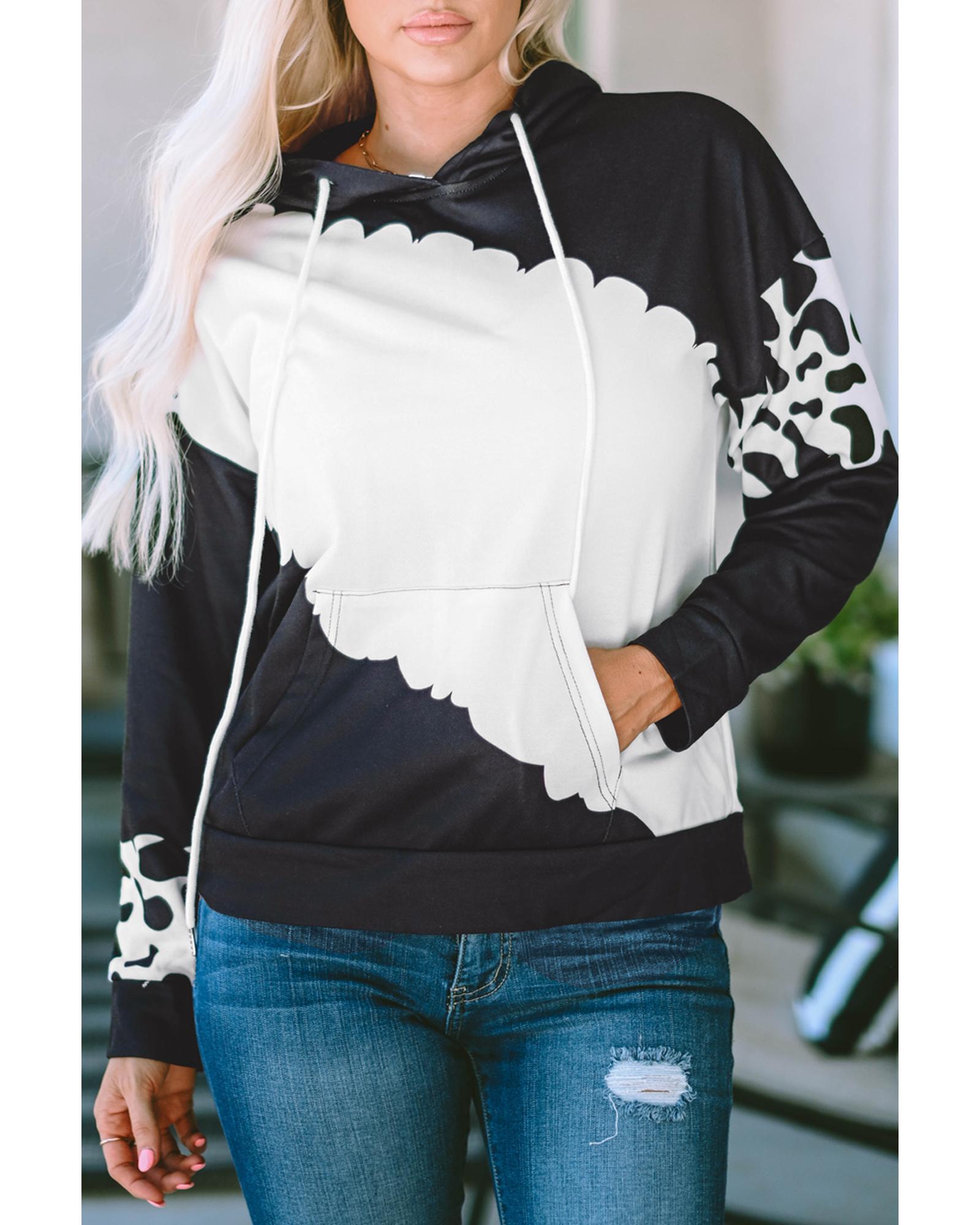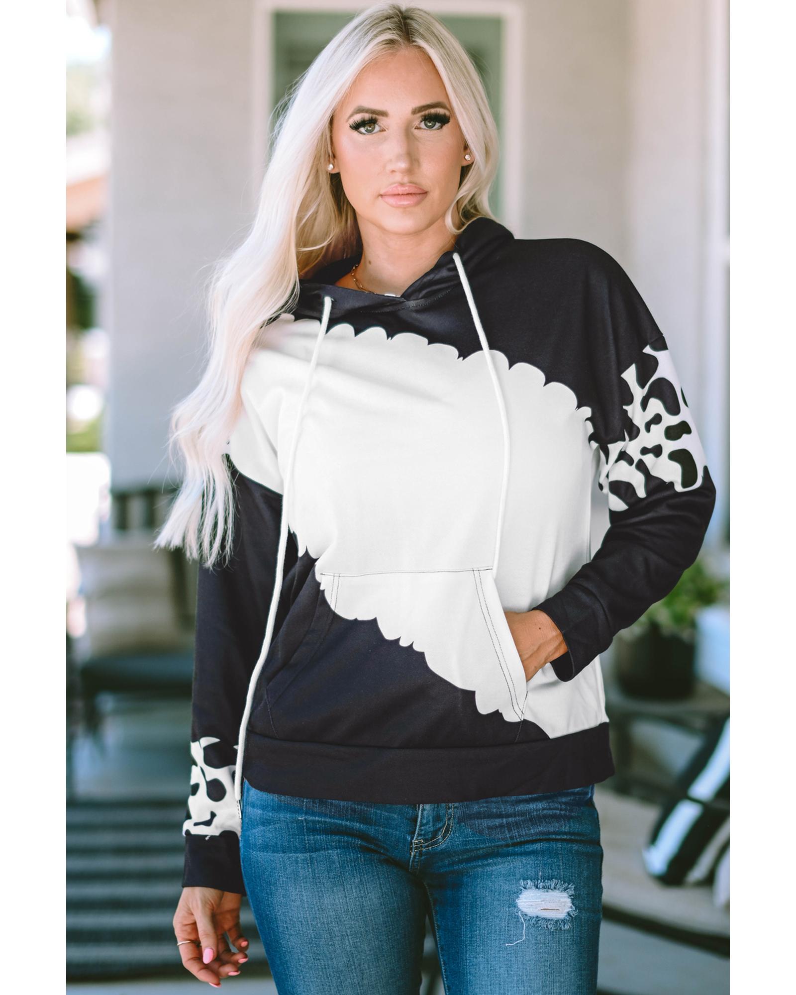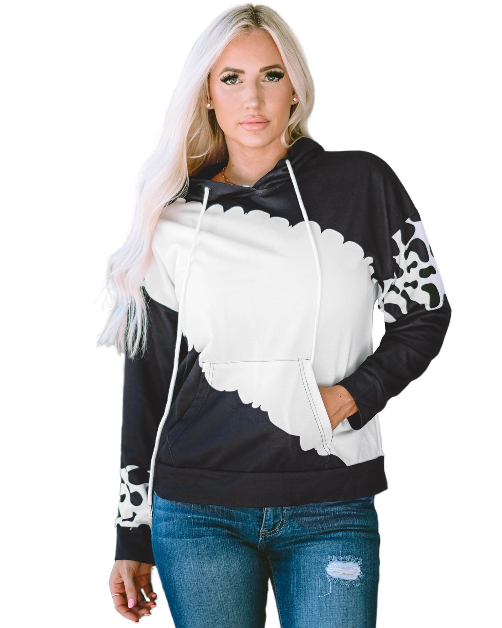 Azura Exchange Cow Tie Dye Print Pullover Hoodie with Pocket – M