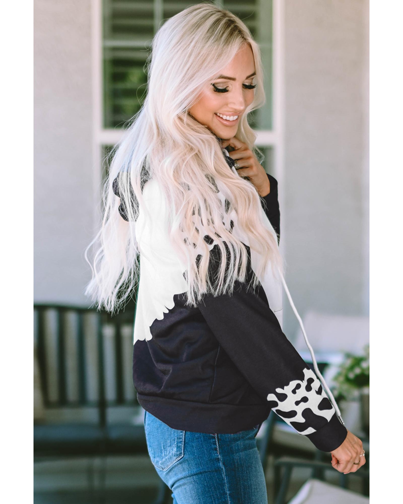 Azura Exchange Cow Tie Dye Print Pullover Hoodie with Pocket – S