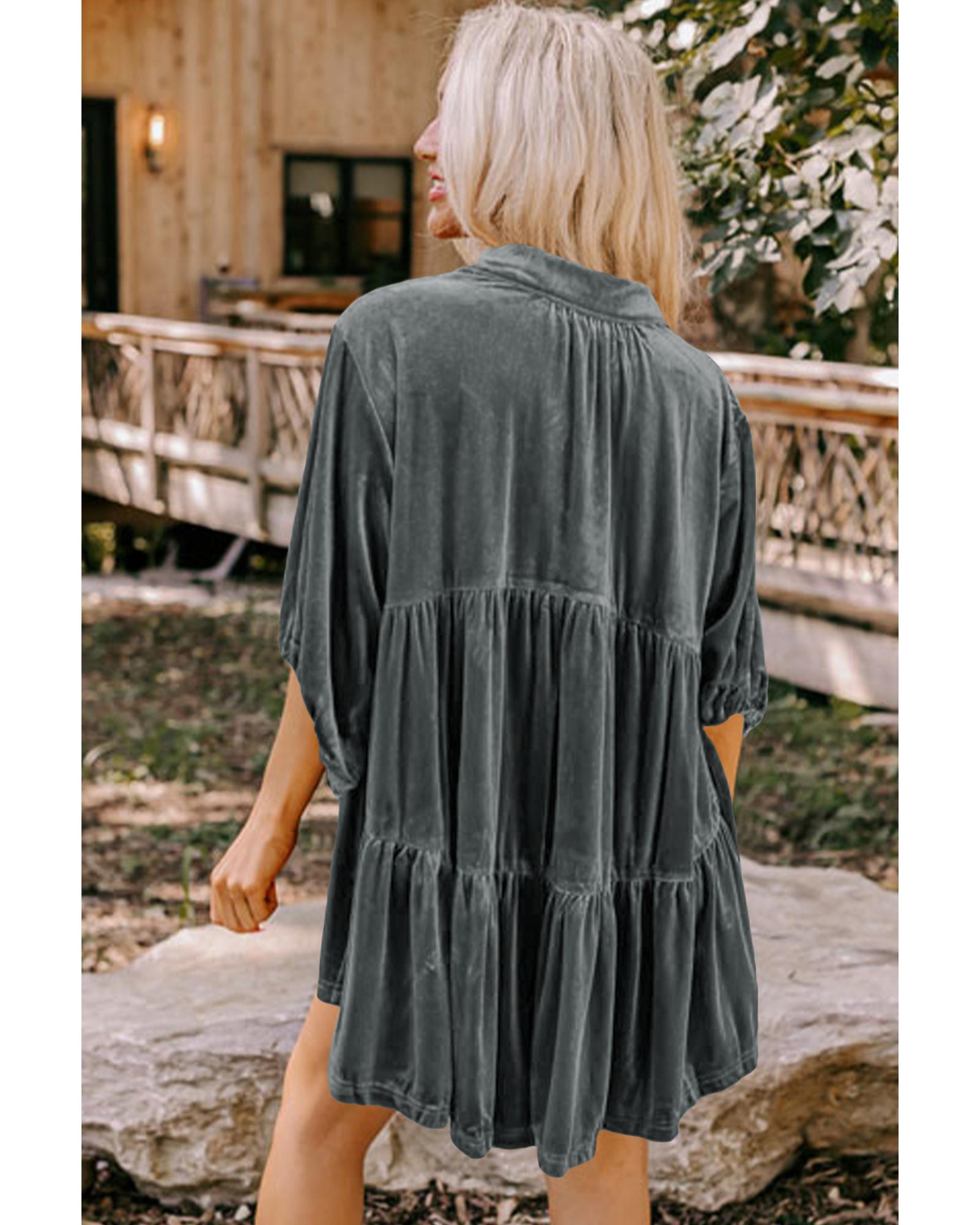 Azura Exchange Dark Grey 3/4 Sleeve Tunic Babydoll Velvet Shirt - S Original price was: $66.99.Current price is: $35.99.