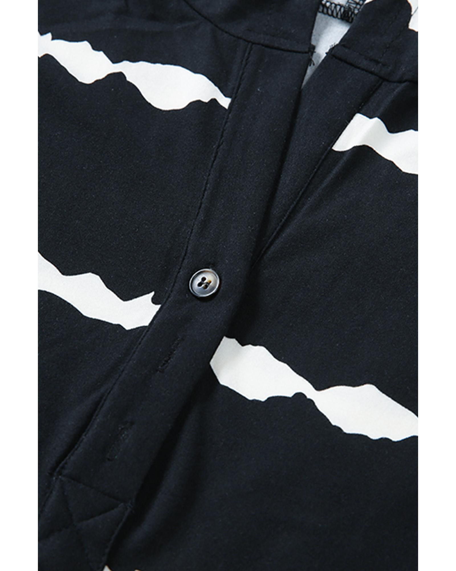 - Striped Drawstring Button Long Sleeve Hoodie