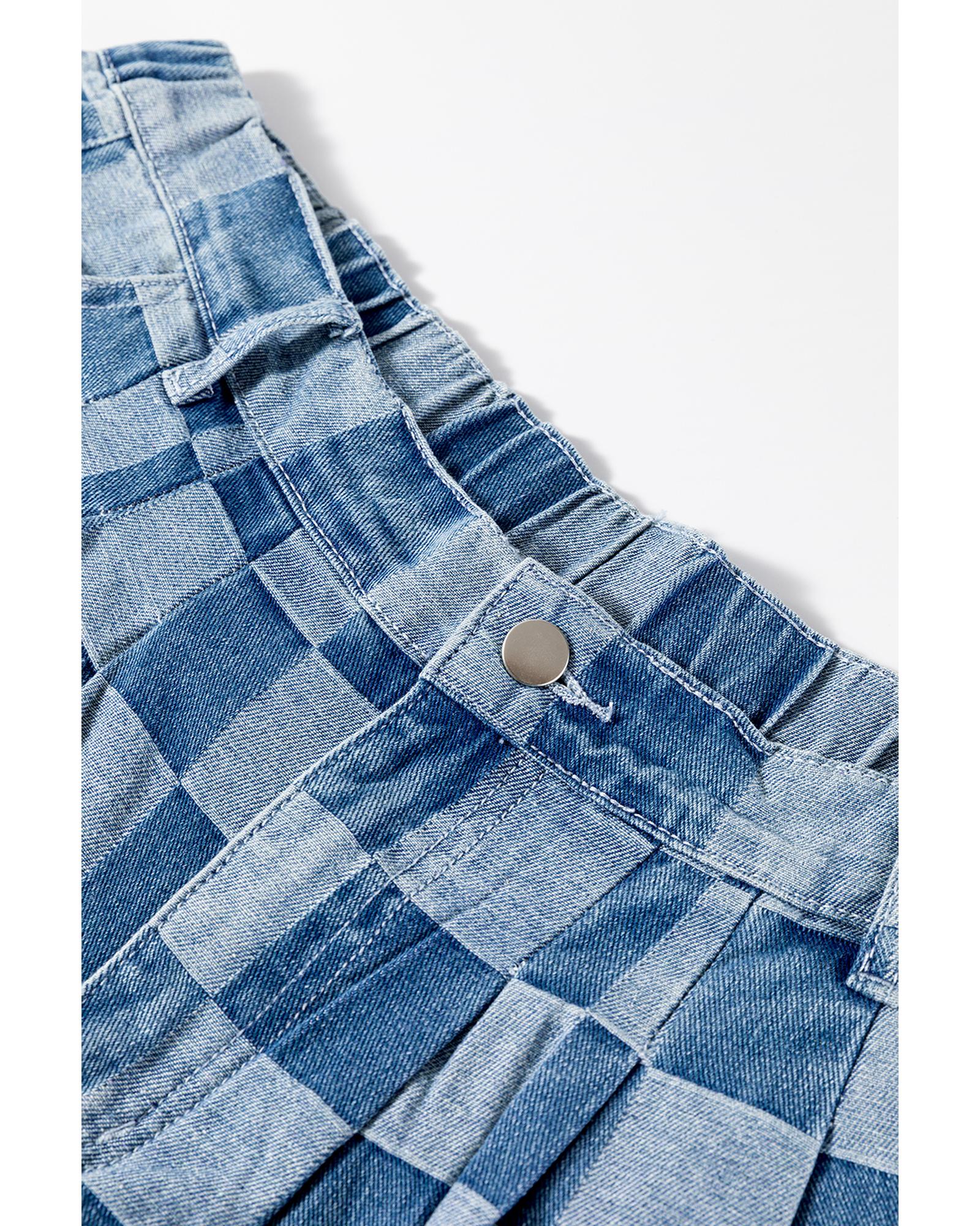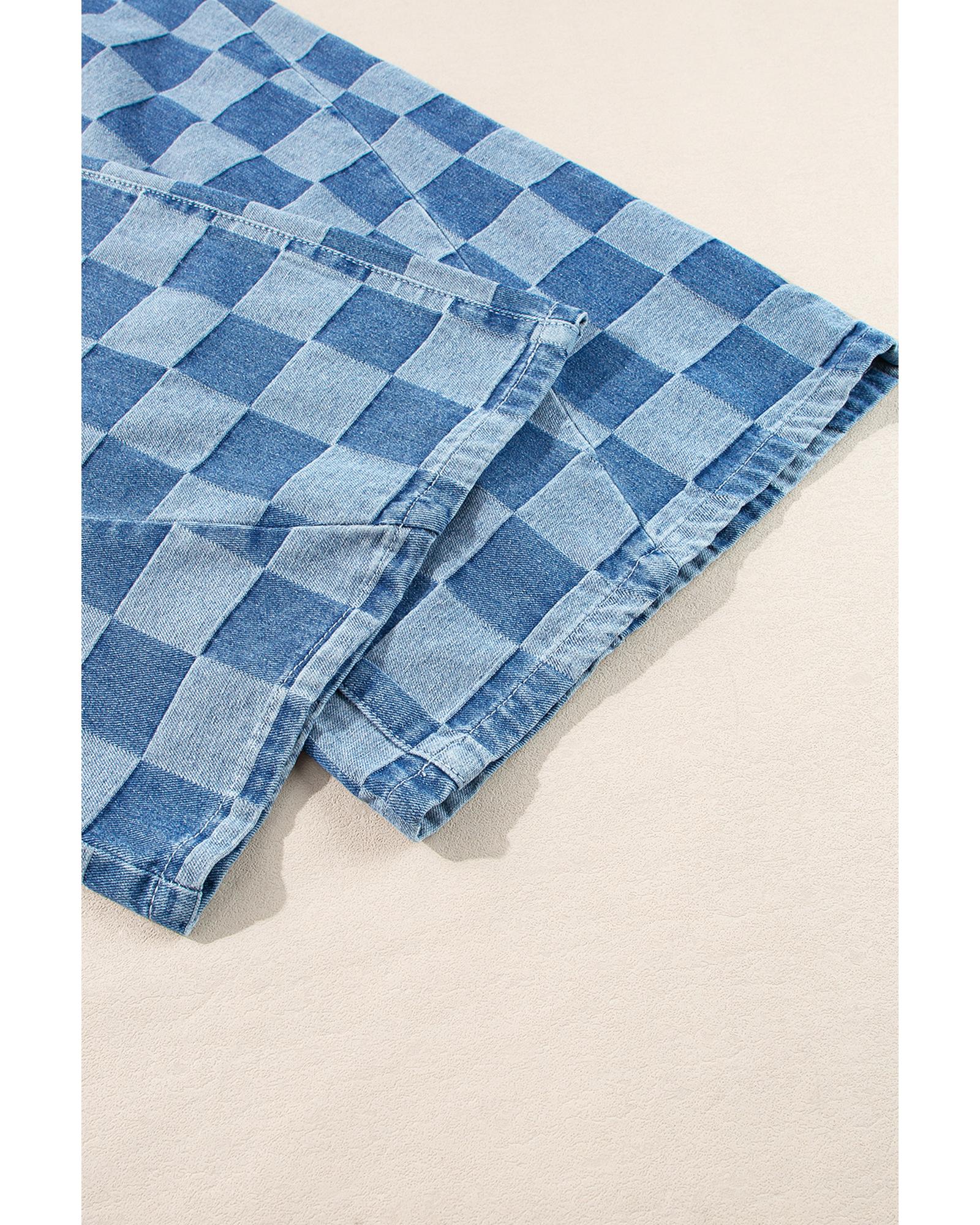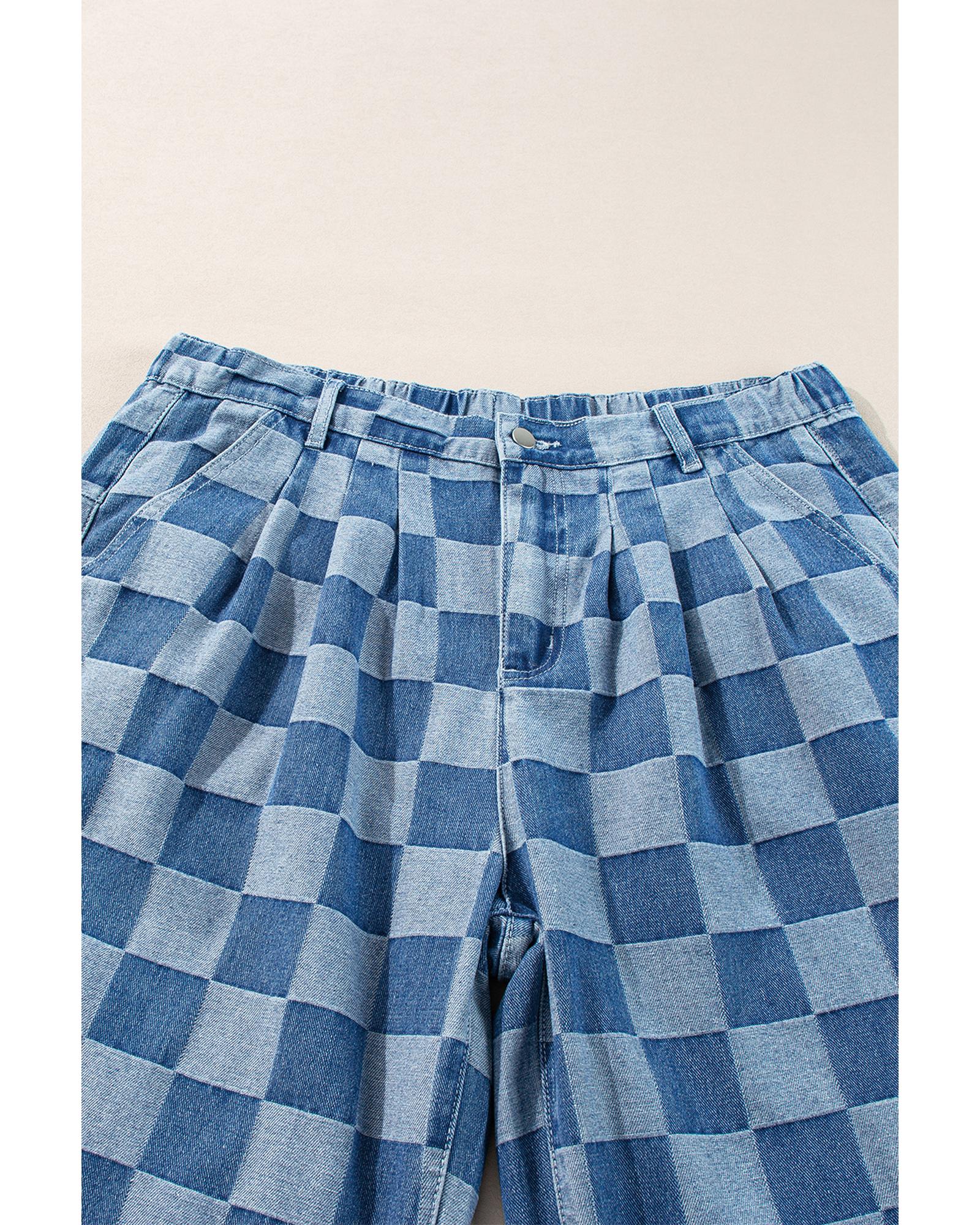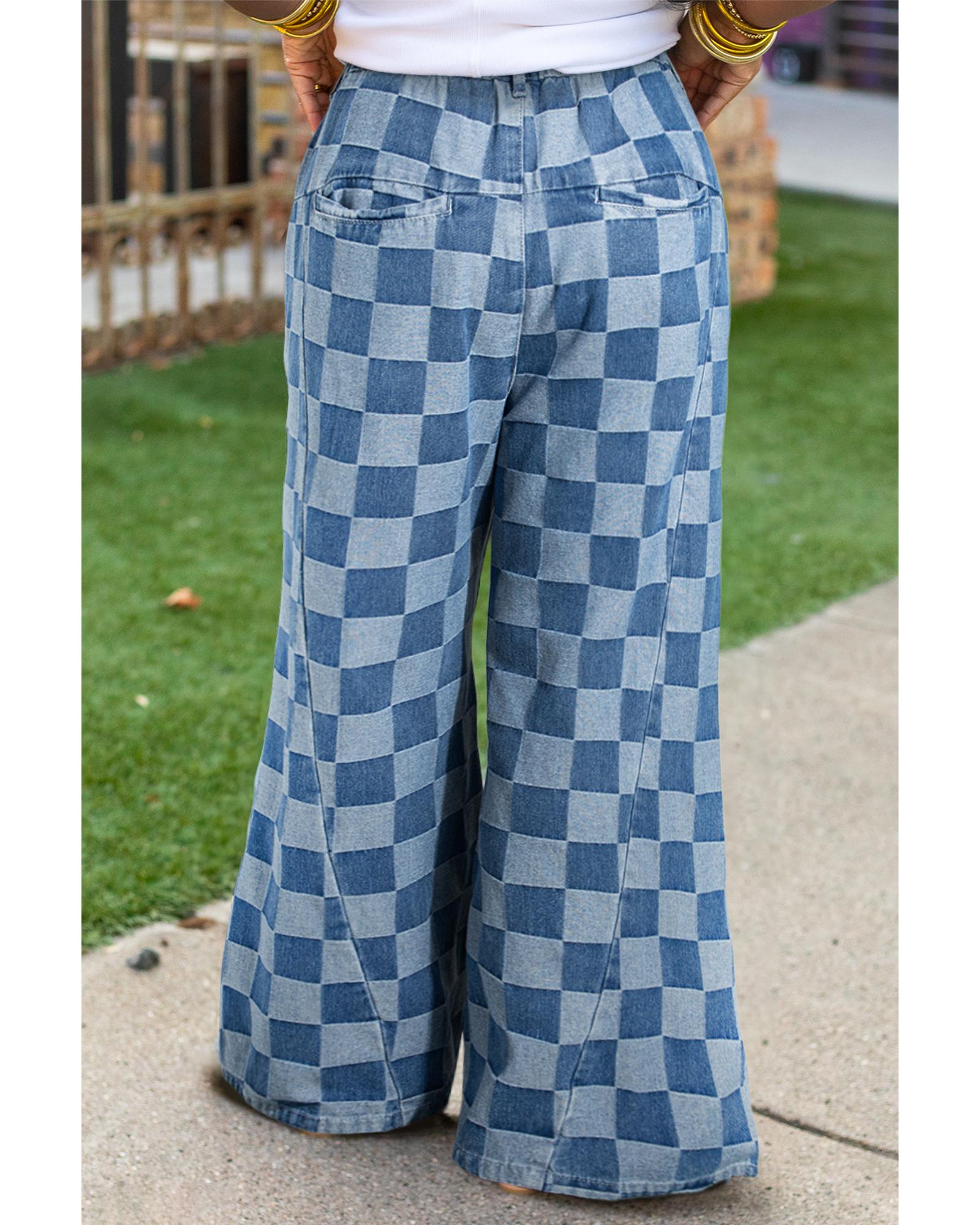 Azura Exchange Dusk Blue Plus Size Checkered Seamed High Waist Wide Leg Jeans – 4X