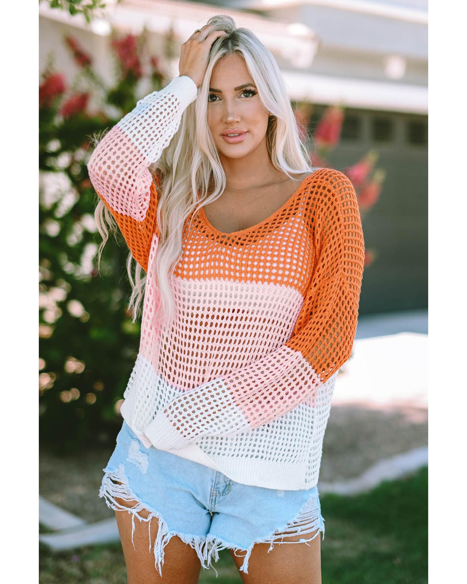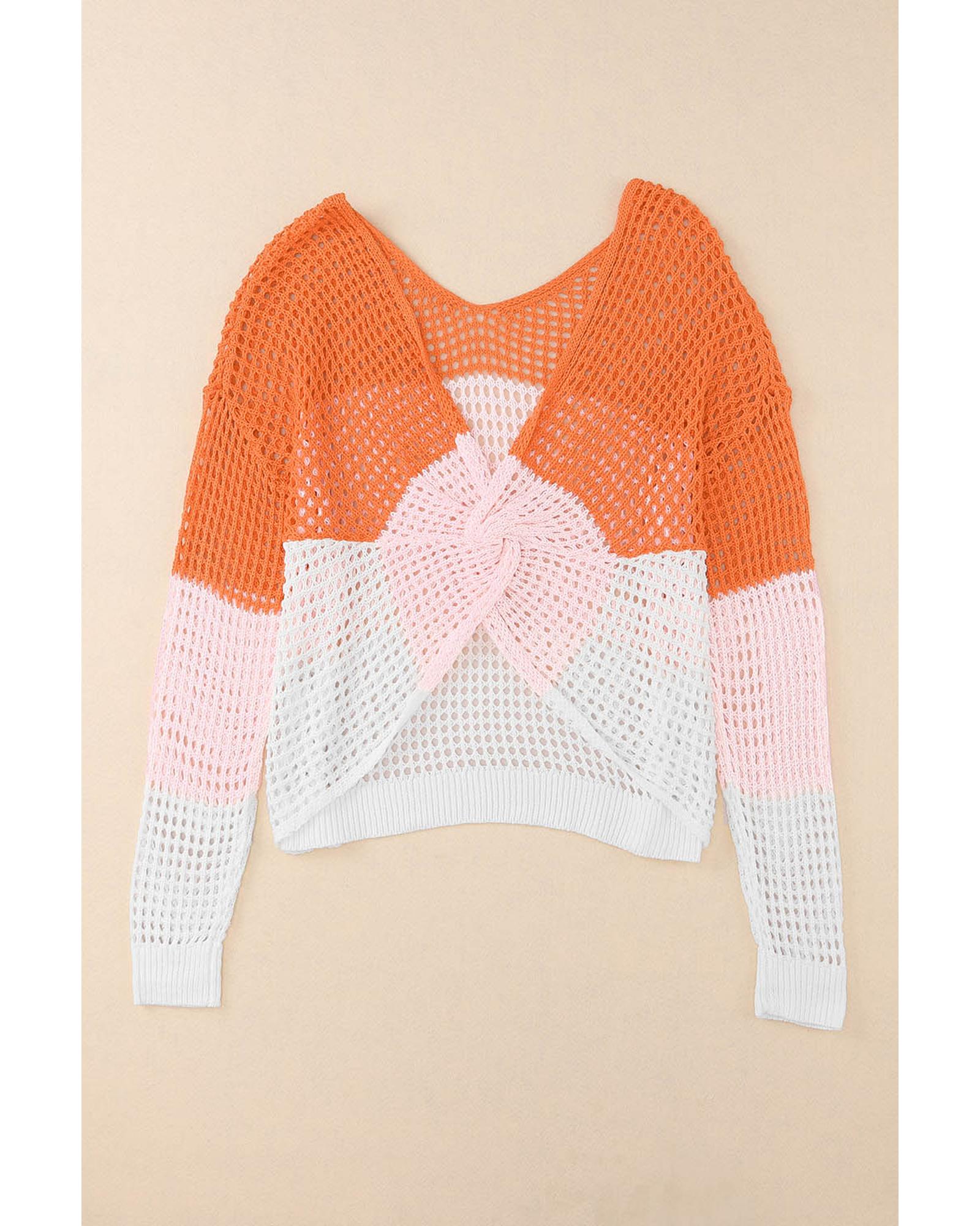 Azura Exchange Eyelet Knit Top with Twisted Back and Color Block Design - L Original price was: $58.99.Current price is: $31.99.