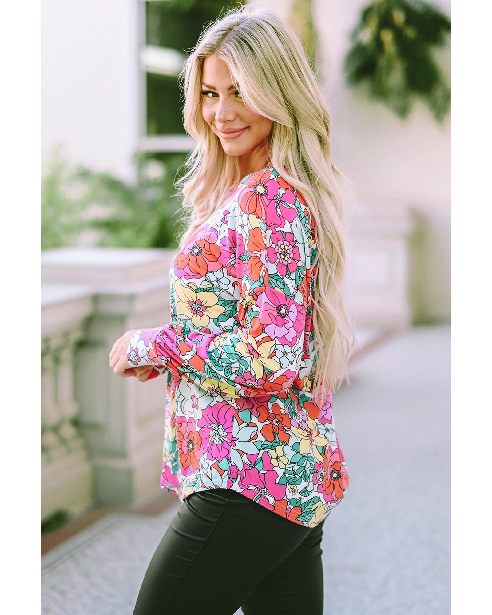 - Multicolor Twisted Hollow-out Back Floral Long Sleeve Top