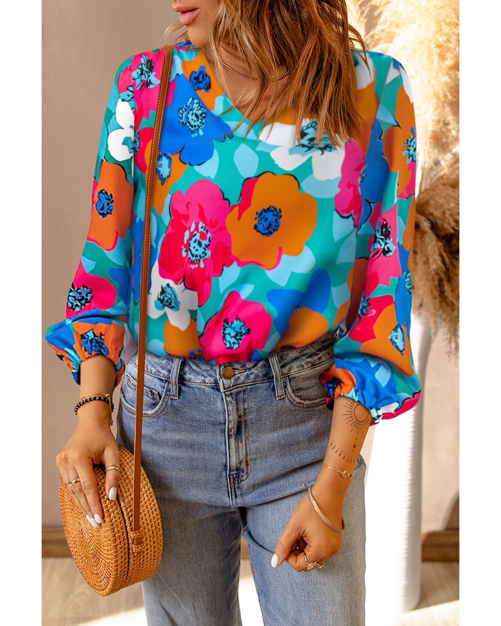 Azura Exchange Floral Print V Neck Blouse – S
