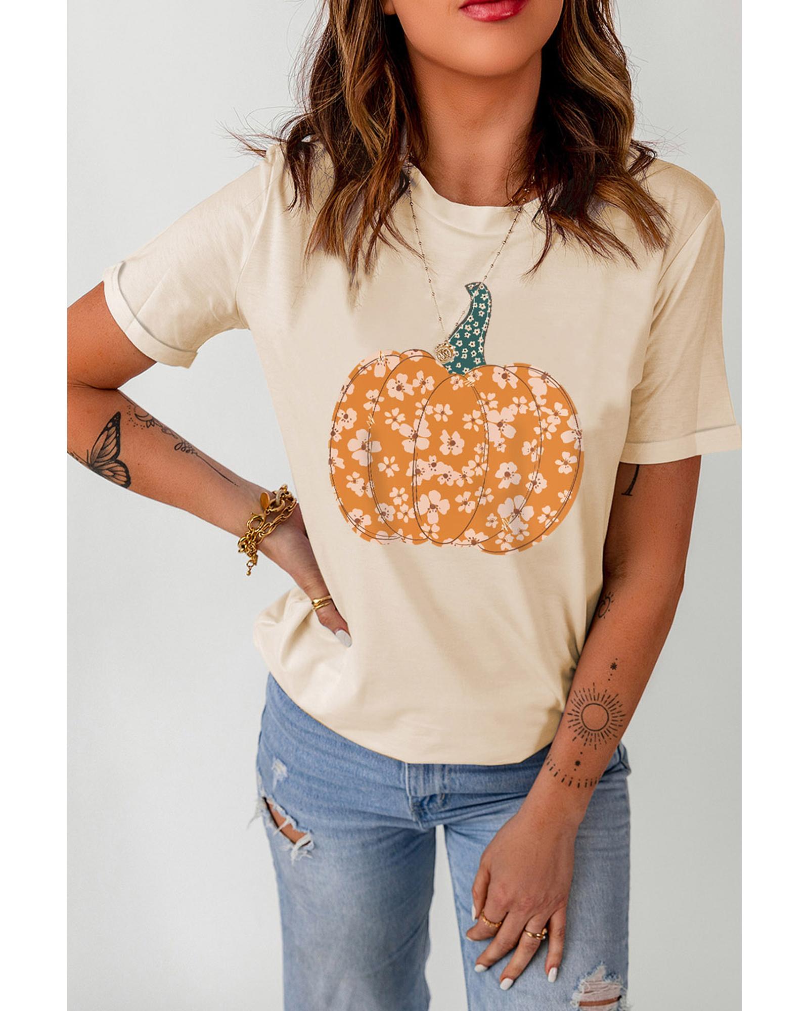 Azura Exchange Floral Pumpkin Graphic Tee – S
