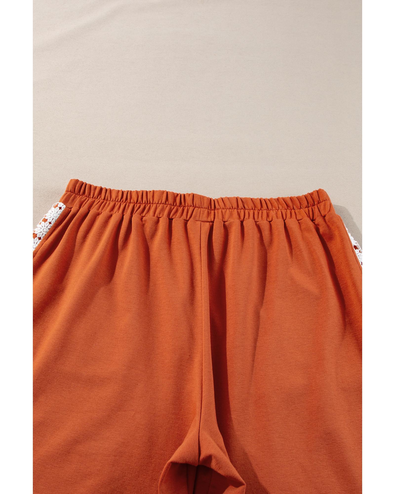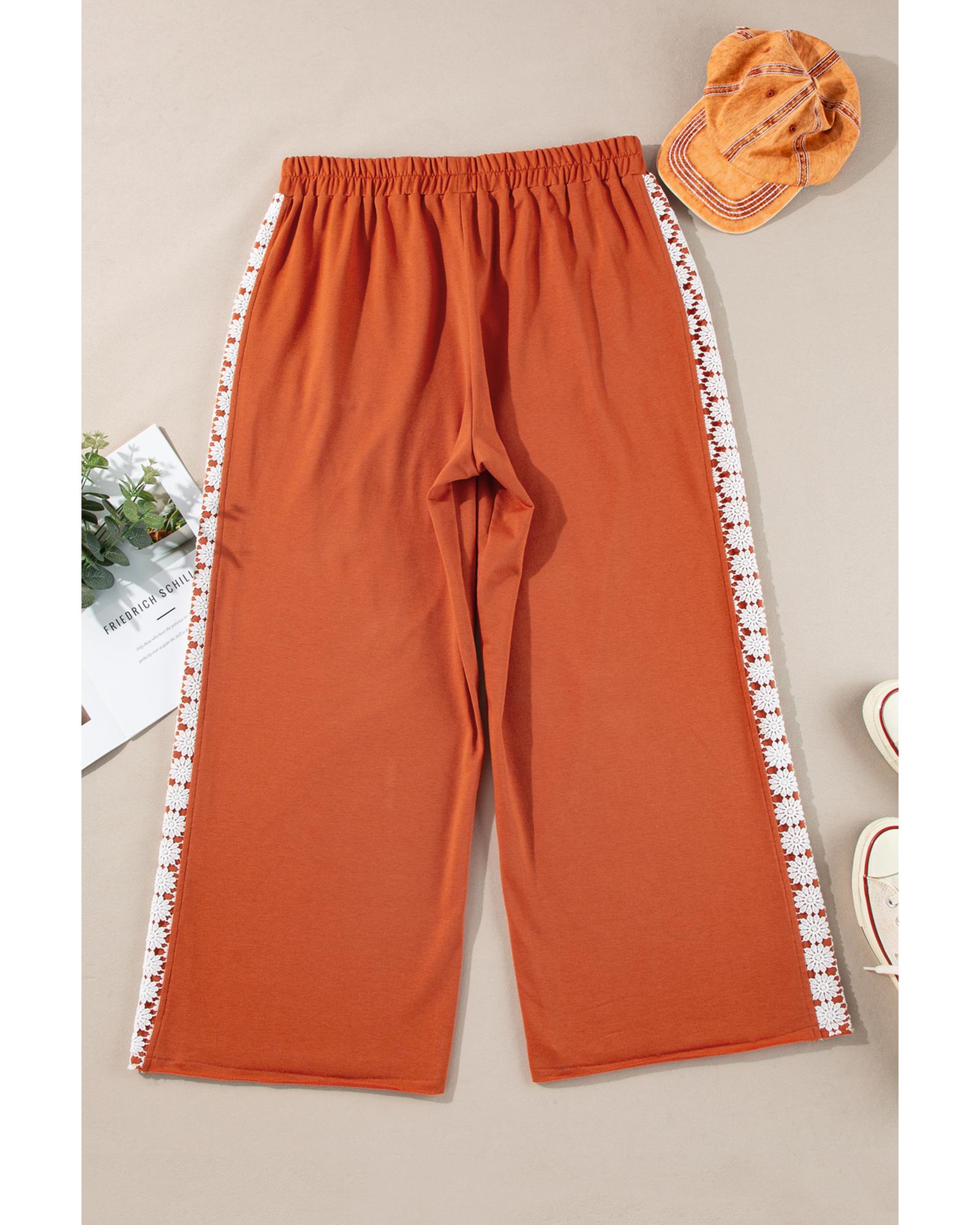 Azura Exchange Gold Flame Plus Size Floral Crochet Patch Drawstring Wide Leg Pants – 3X