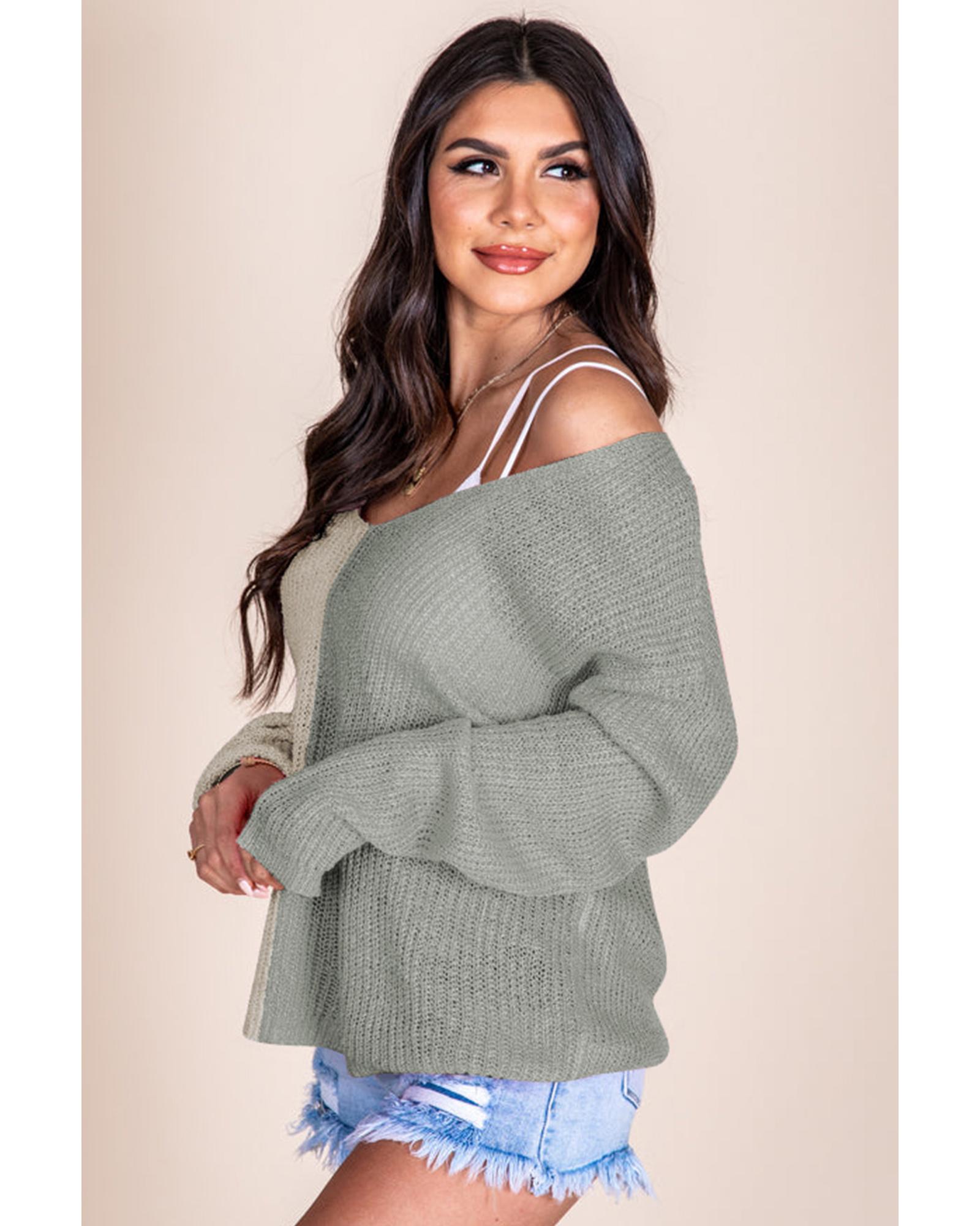 Azura Exchange Gray Long Sleeve V-Neck Colorblock Sweater – M