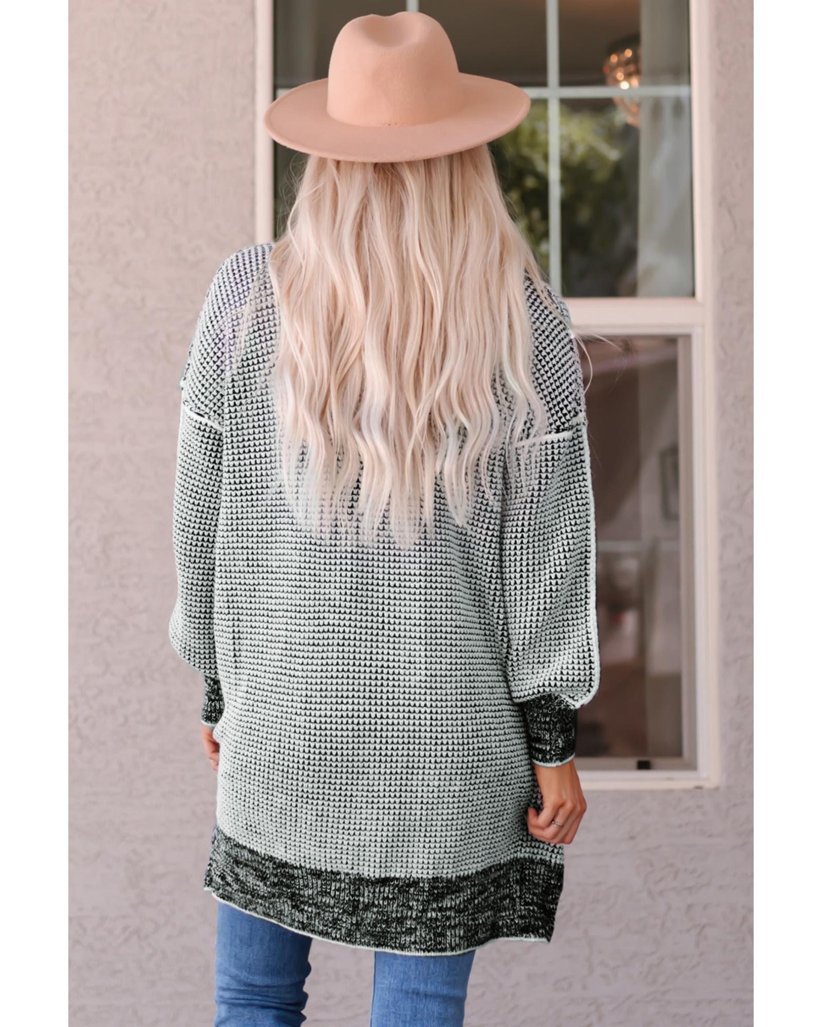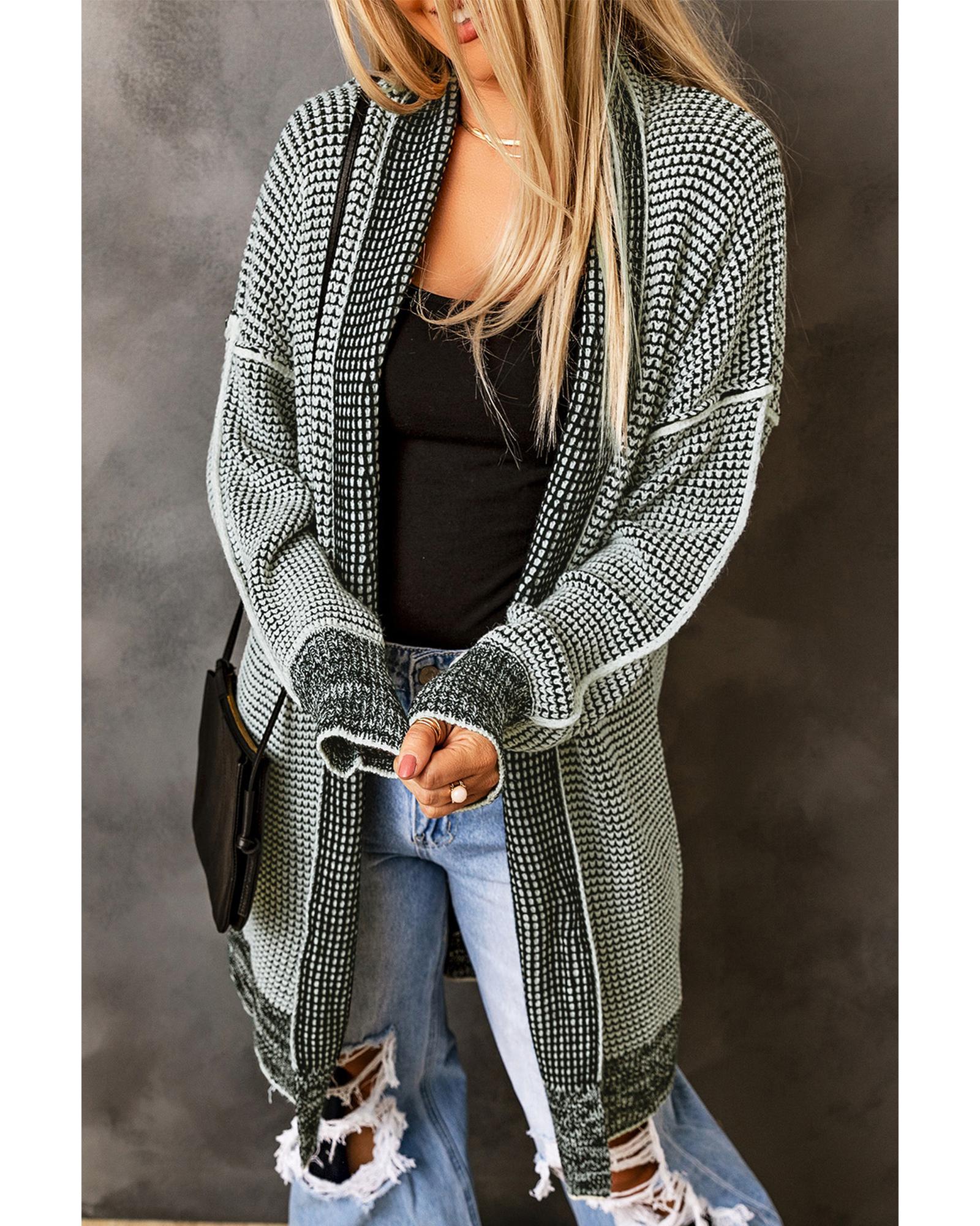 Azura Exchange Gray Plaid Knitted Long Open Front Cardigan – XL