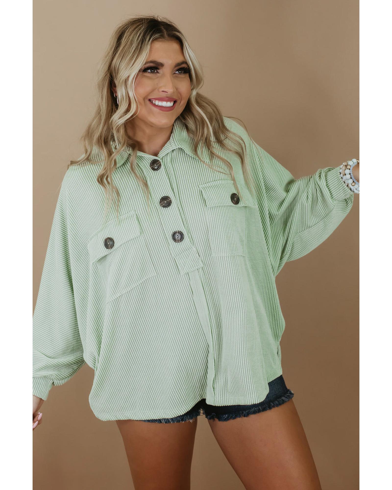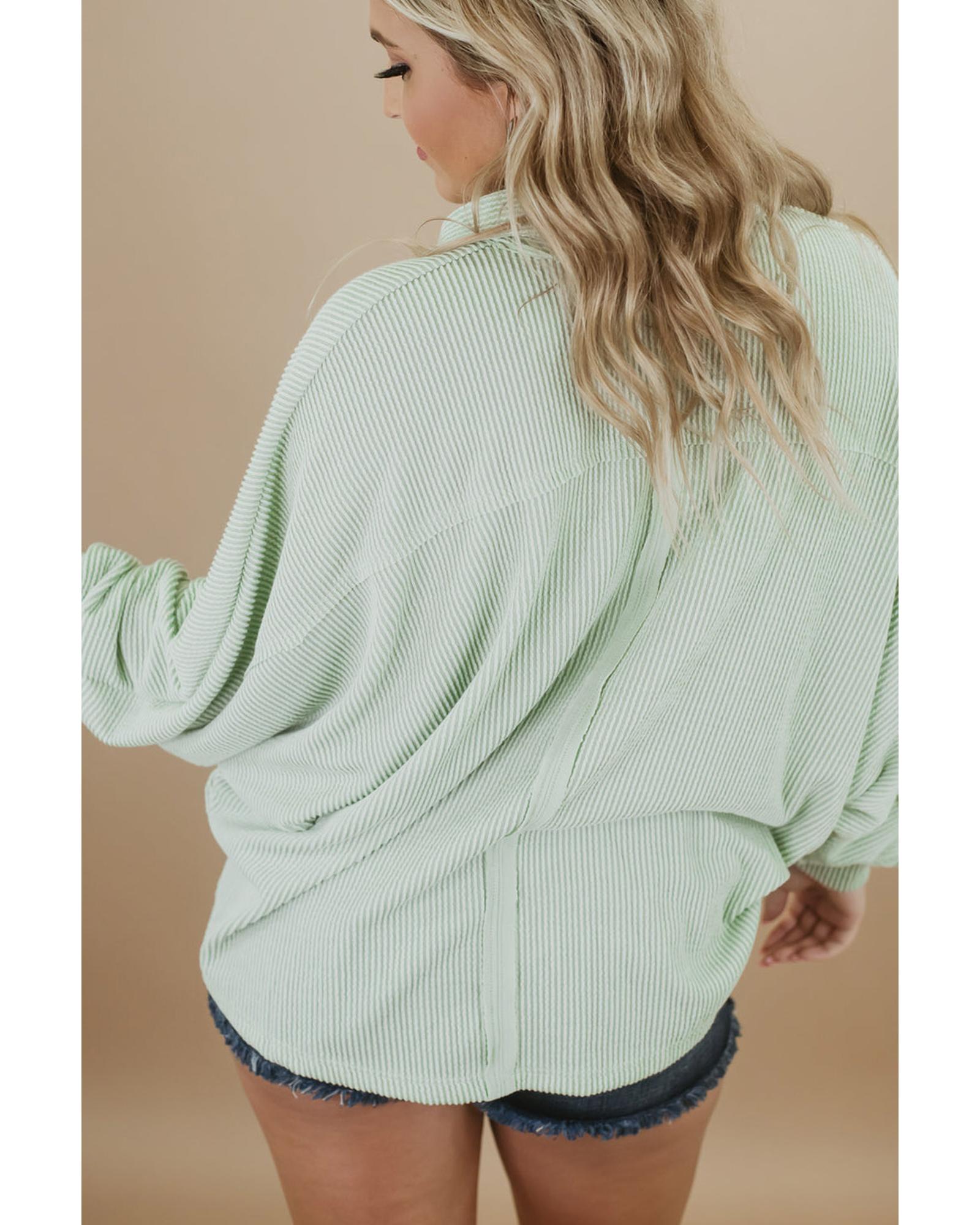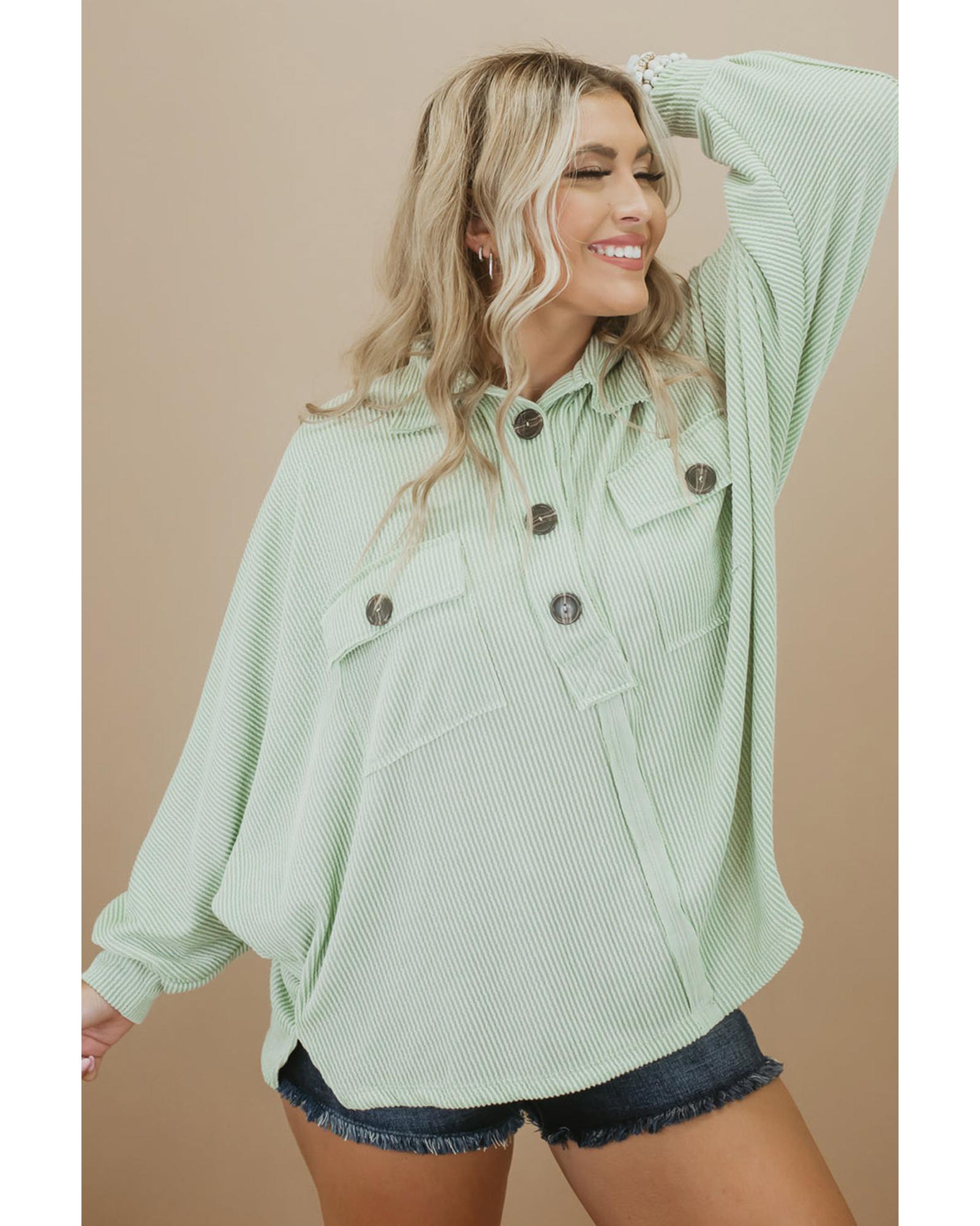 Azura Exchange Green Plus Size Ribbed Pocketed Long Sleeve Henley Top – 1X