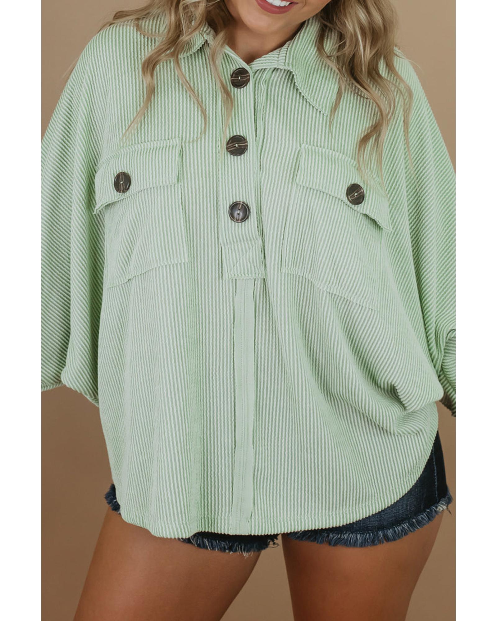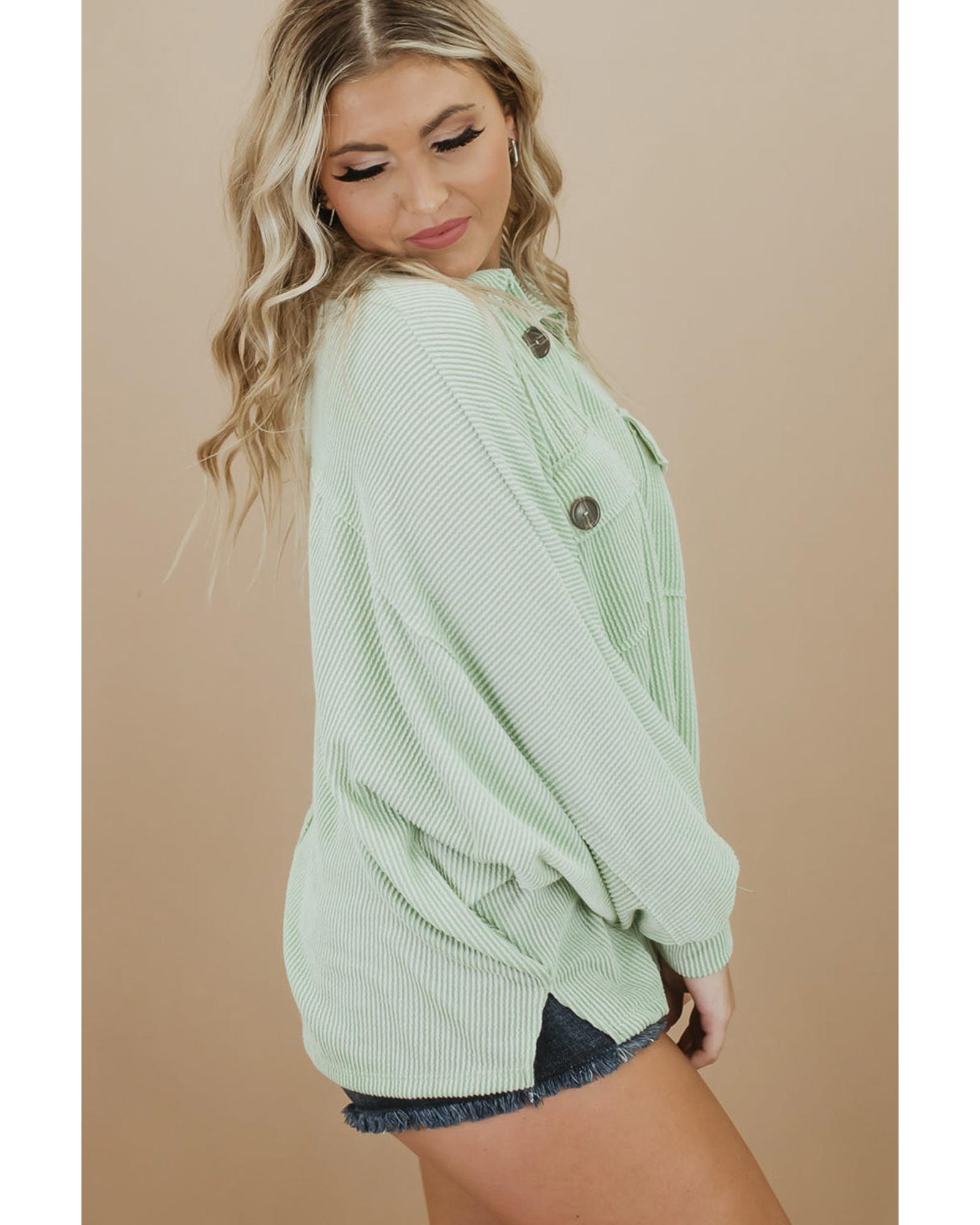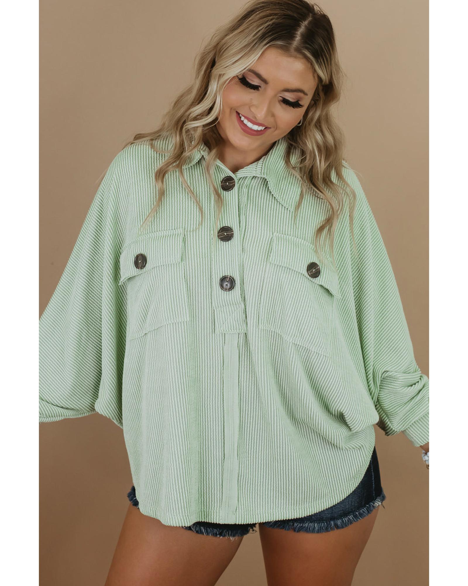 Azura Exchange Green Plus Size Ribbed Pocketed Long Sleeve Henley Top – 1X