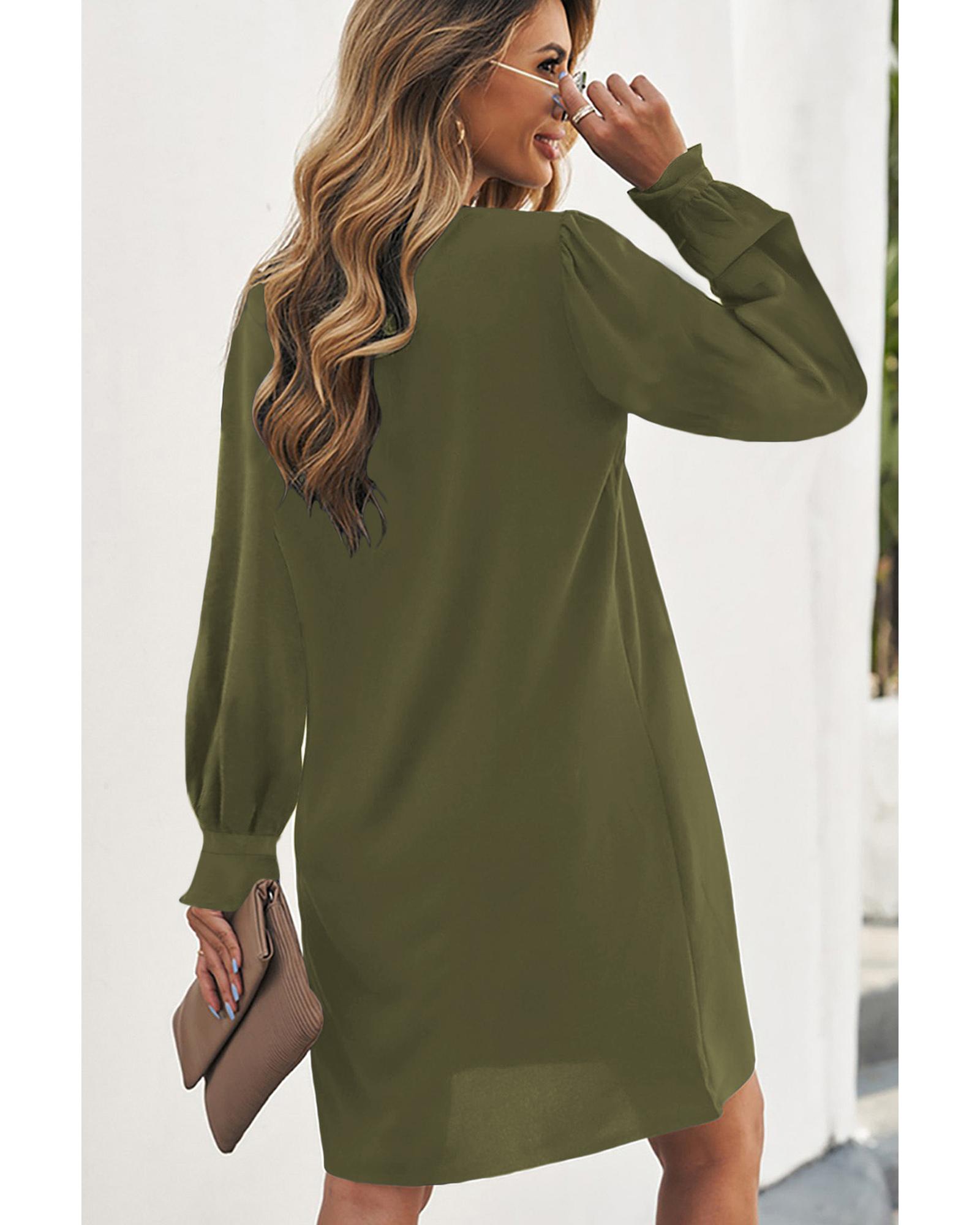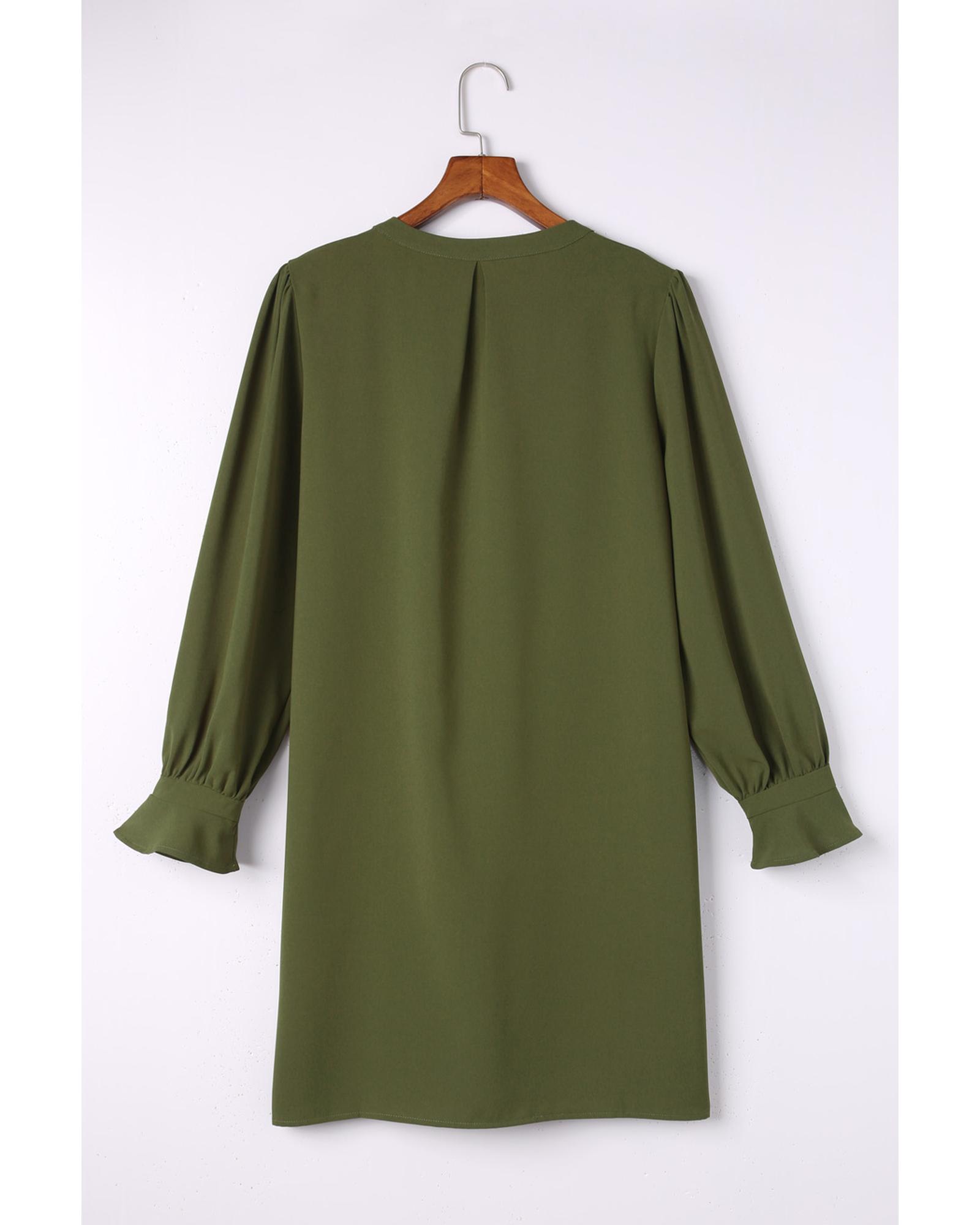 Azura Exchange Green Split V Neck Ruffled Sleeves Shirt Dress – L