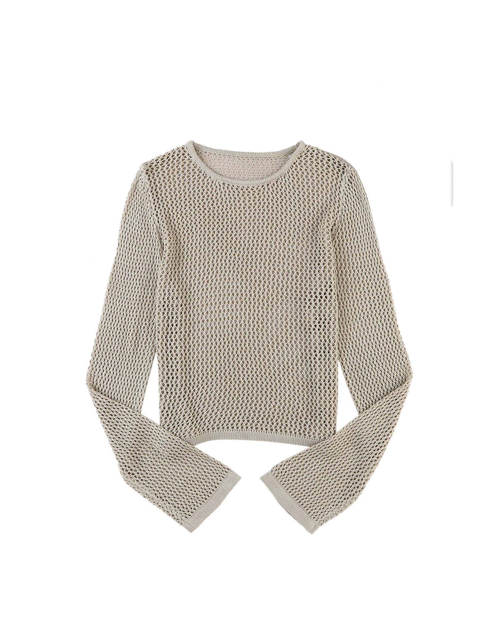 • Stylish and versatile Khaki Hollow-out Knit Long Sleeve Top