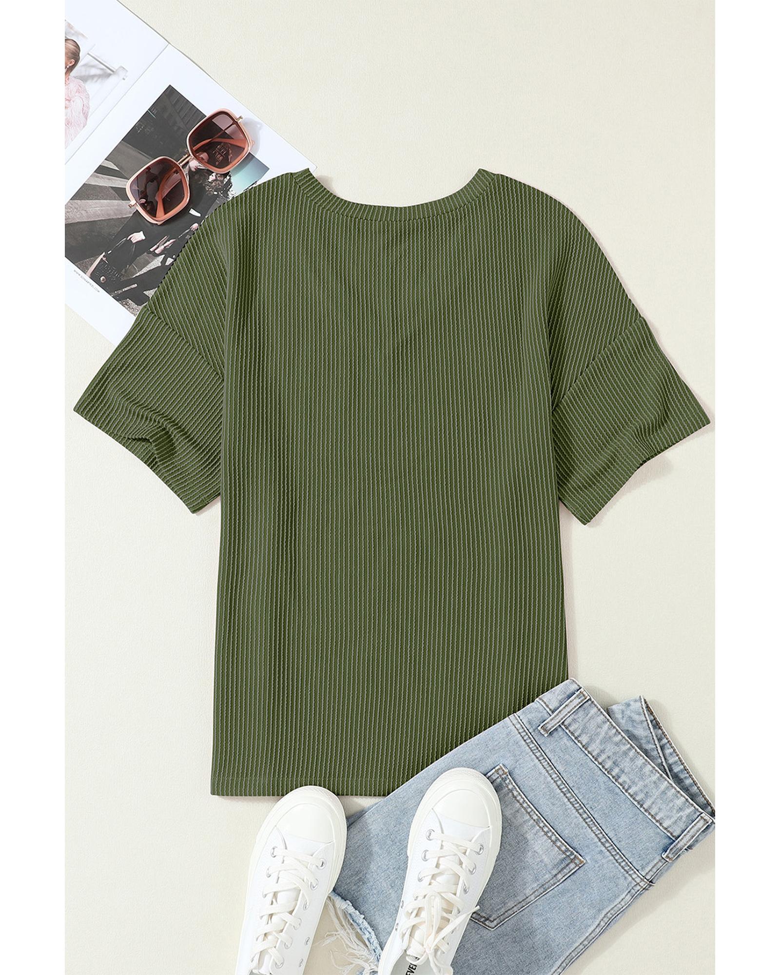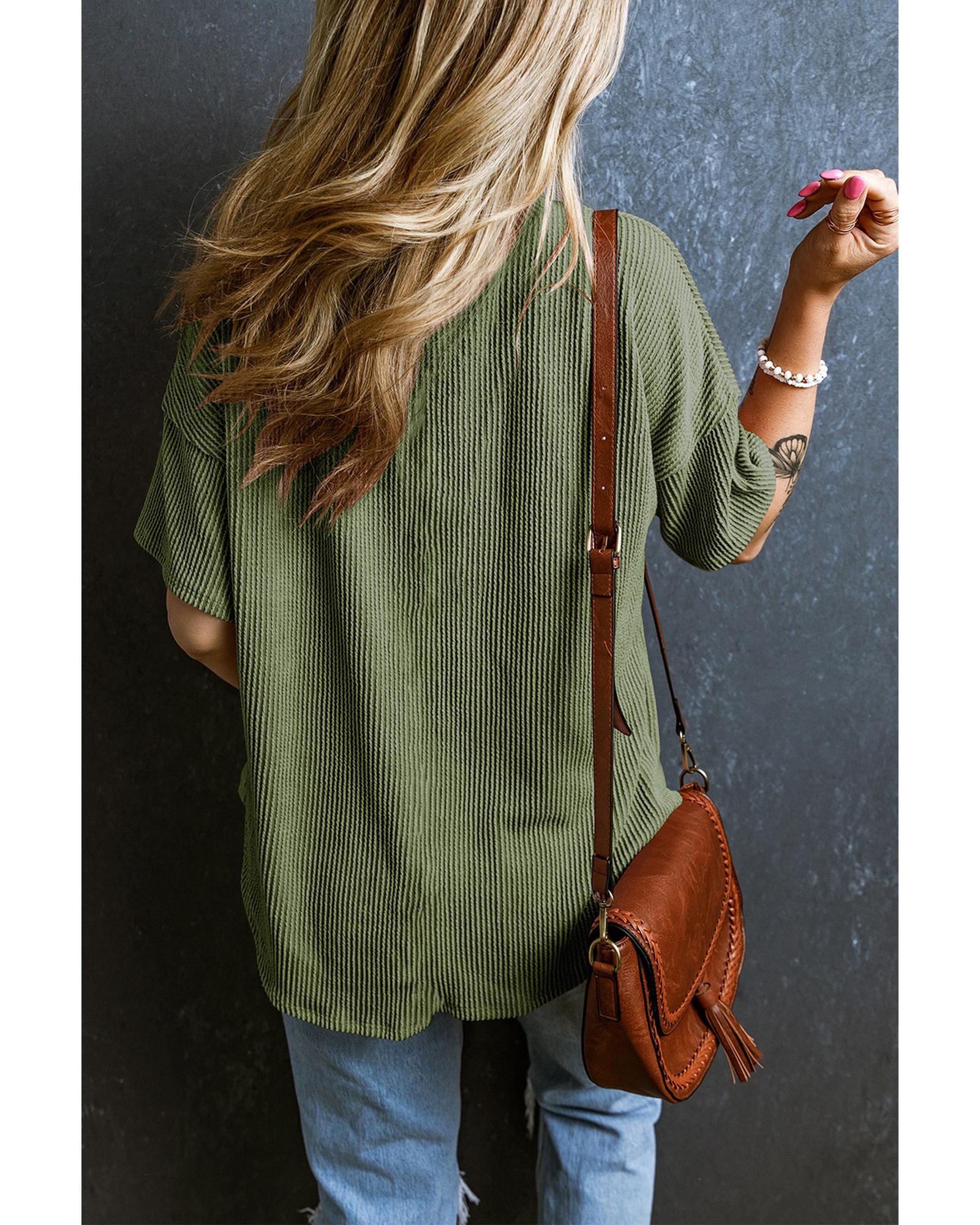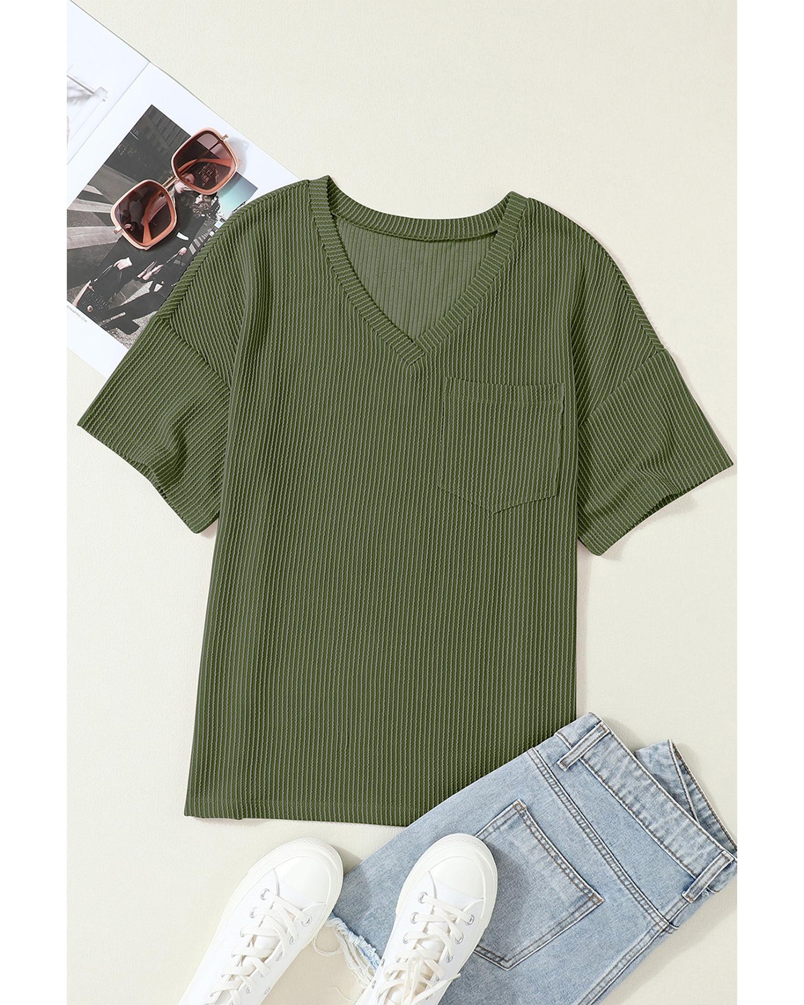 Azura Exchange Jungle Green Corded V Neck Chest Pocket Loose T-shirt – L