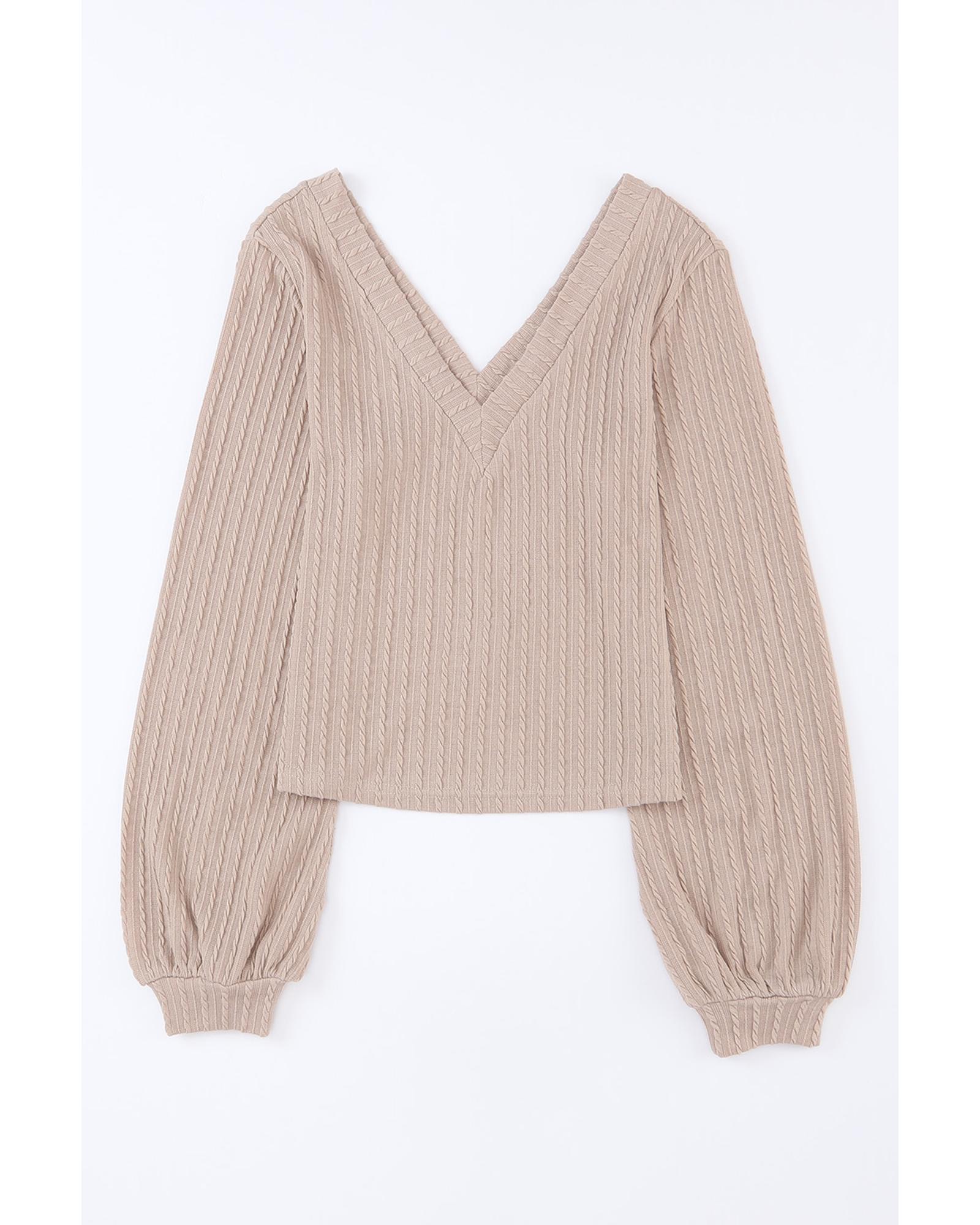 Azura Exchange Knitted Jacquard V Neck Lantern Sleeve Top – M
